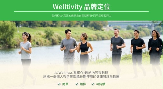 Welltivity 作為喬山健康科技集團旗下的全球大健康生活平台,致力於全方位打造開放、共榮的「大健康生態圈」。以Wellness為核心,透過內容與數據,建構一個個人與企業都能長期使用的健康管理生態圈。