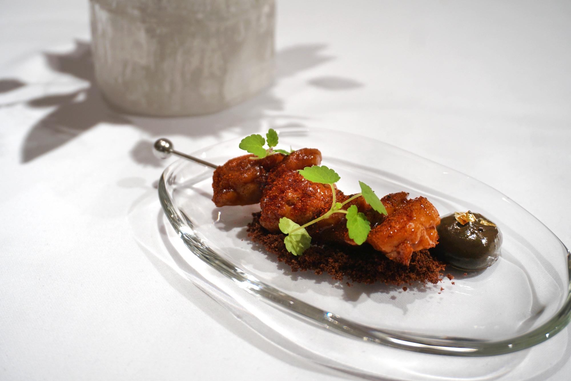 以魚子醬的鹹鮮與海潮氣息,輕柔襯托雪莉甜潤與細緻煙燻,開啟一段優雅且平衡的風味序章。