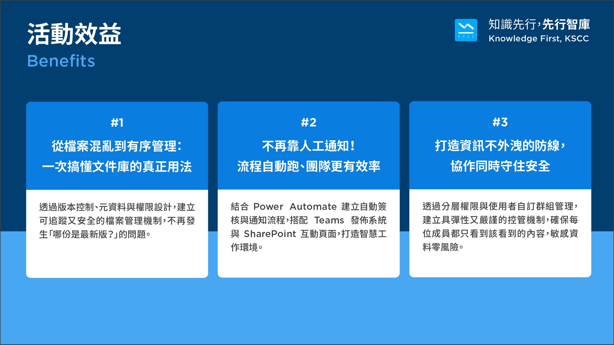 本活動將介紹多種實務應用情境,整合 SharePoint 與 Power Automate,協助企業後有效導入 SharePoint,包括: