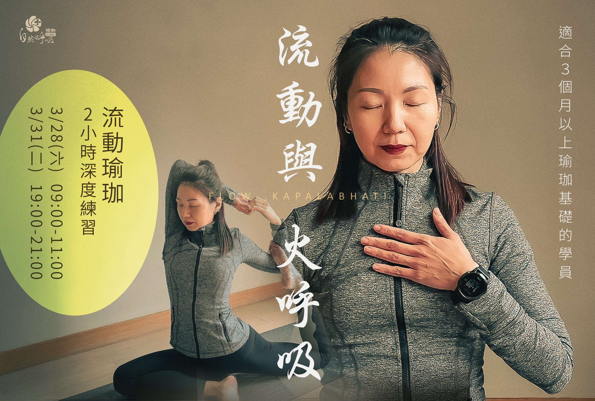 【流動與火呼吸】是一堂為正在內耗、疲憊與轉換期中的你所設計的瑜珈課程。
