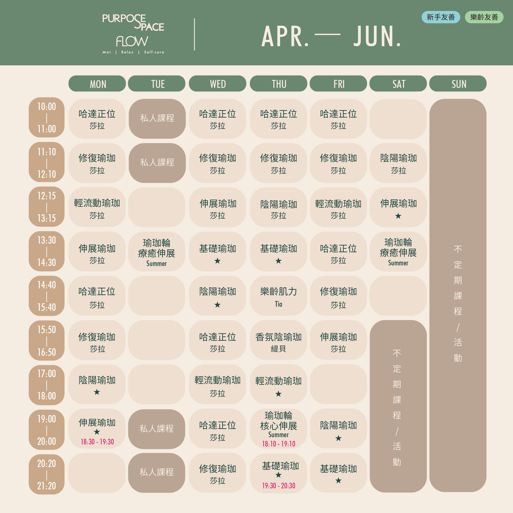 我們相信,身體的改變來自長時間的練習,而不是一次做到多厲害。FLOW 嚴選師資團隊,循序漸進帶領,陪你在日常中,慢慢累積。