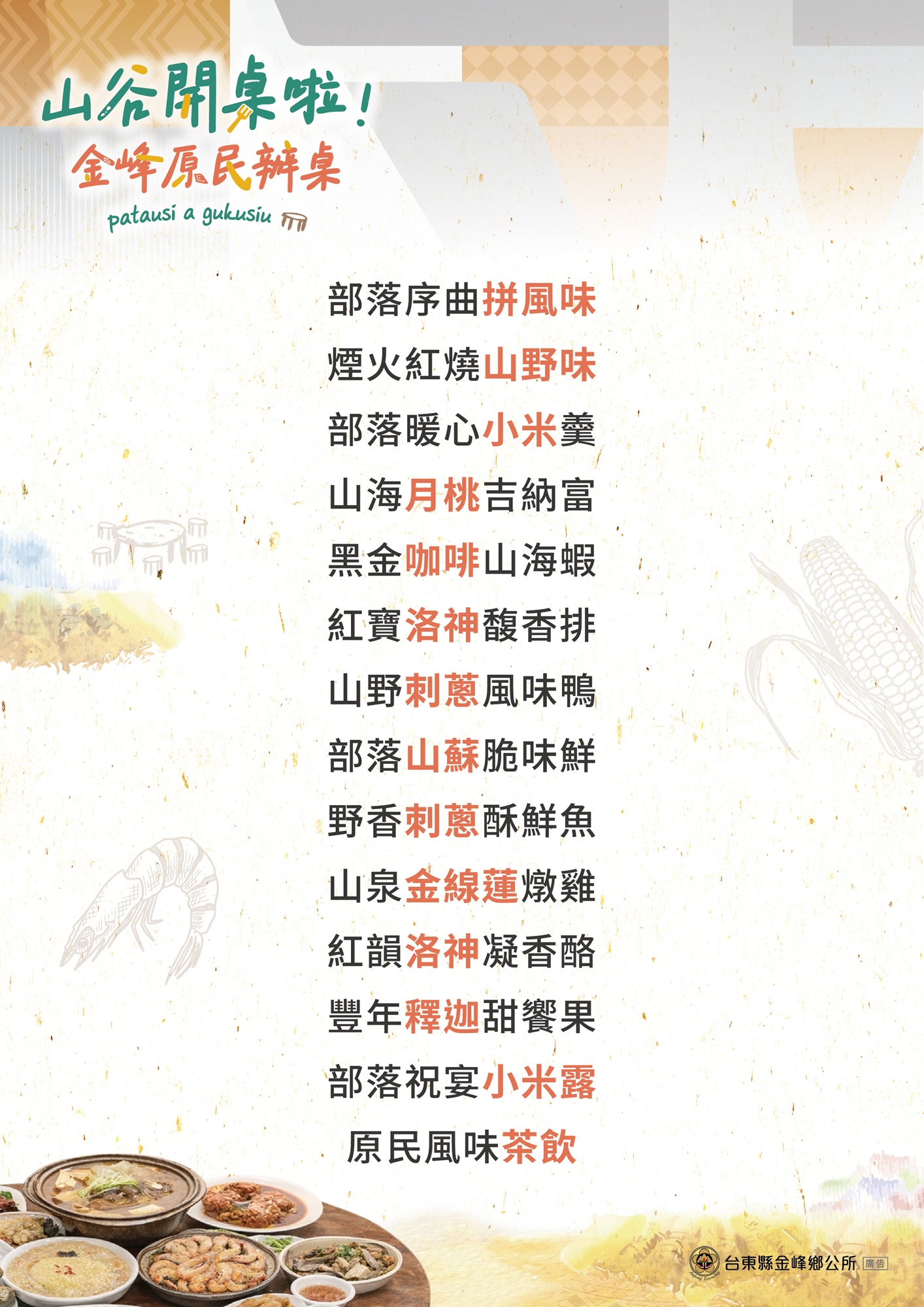 2026金峰原民辦桌,以在地農產 × 原住民族飲食文化 × 辦桌共享精神為核心,