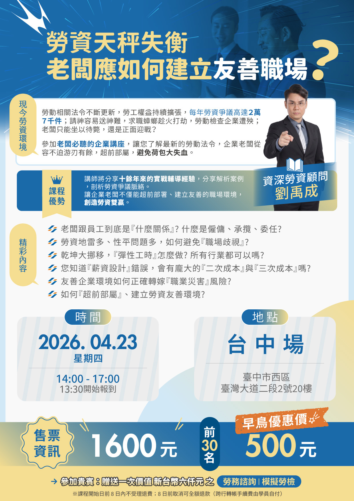 凡參加就送 價值 NT$6,000 之【勞務諮詢|模擬勞檢】乙次