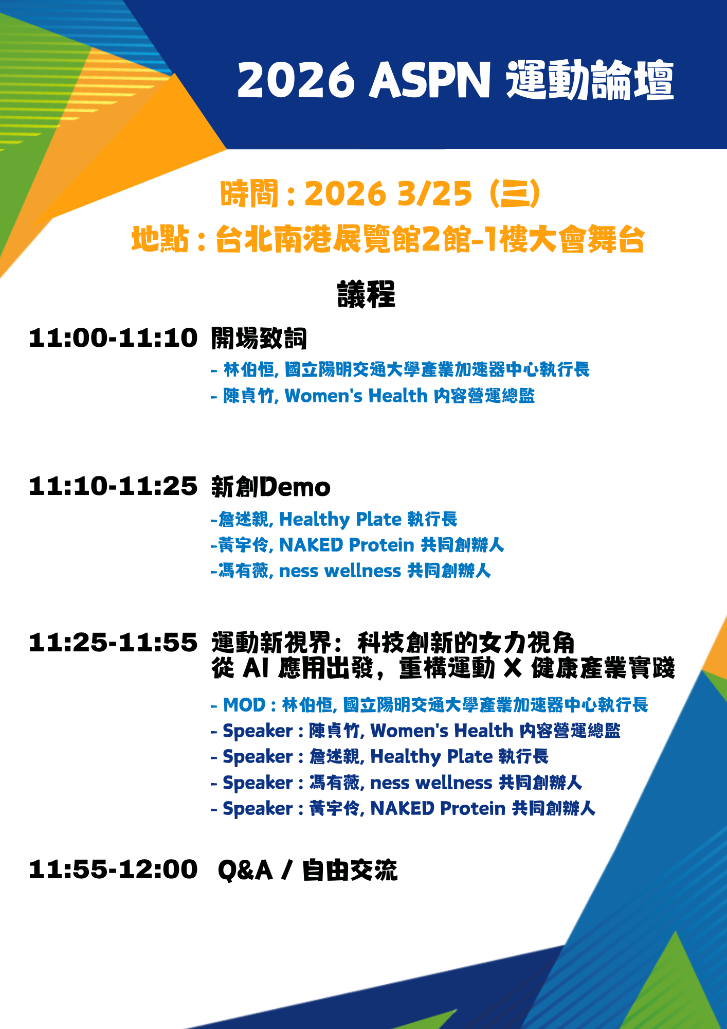 - 論壇地點: 2026年台灣國際運動及健身展-大舞台區