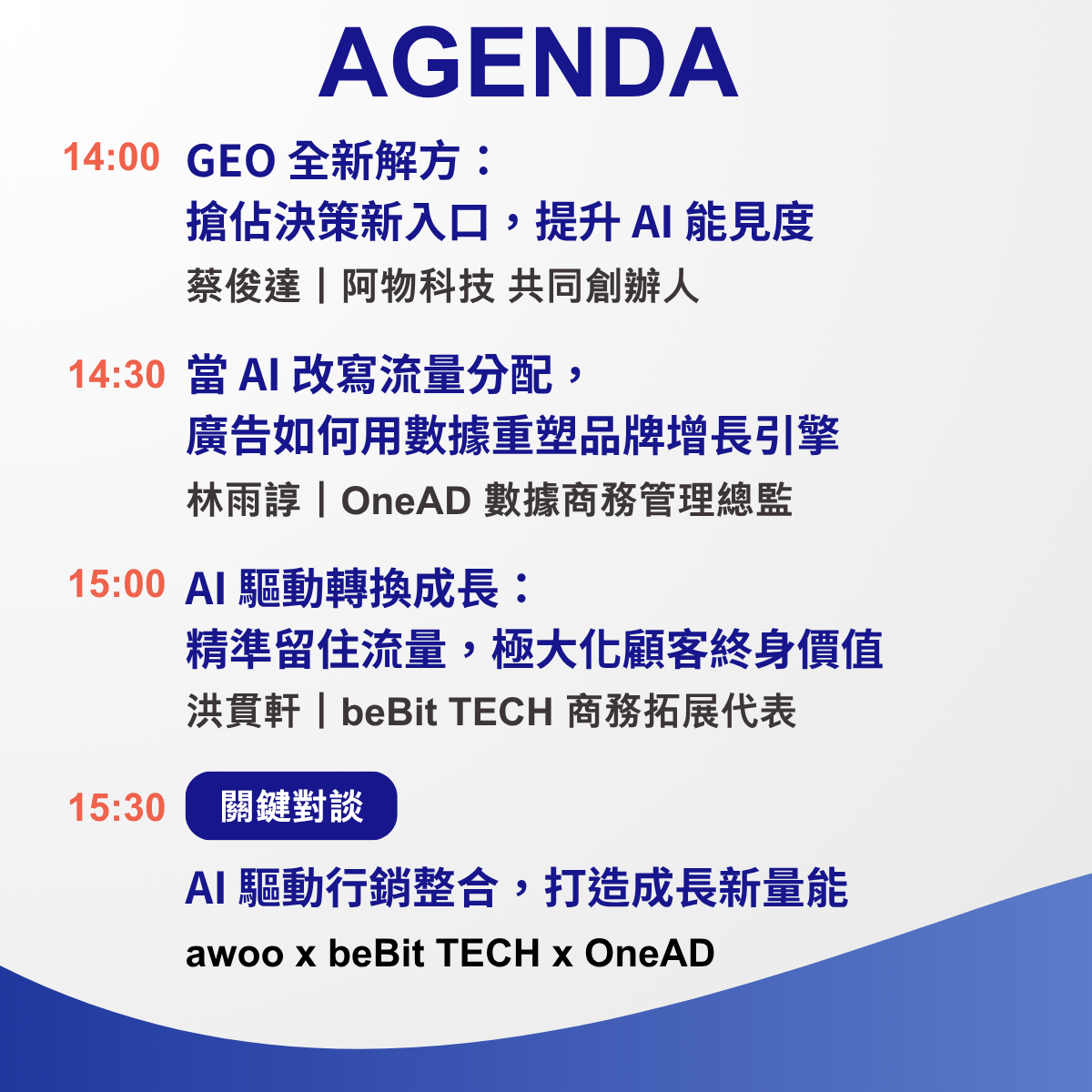 AI 不僅改變了搜尋,更提升了流量的價值。這不只是一場技術分享,更是一場關於「流量、廣告、數據」三位一體相互串聯的思維轉型。讓我們一起從零開始打造 2026 品牌成長的新結構,在 AI 浪潮中贏得先機!