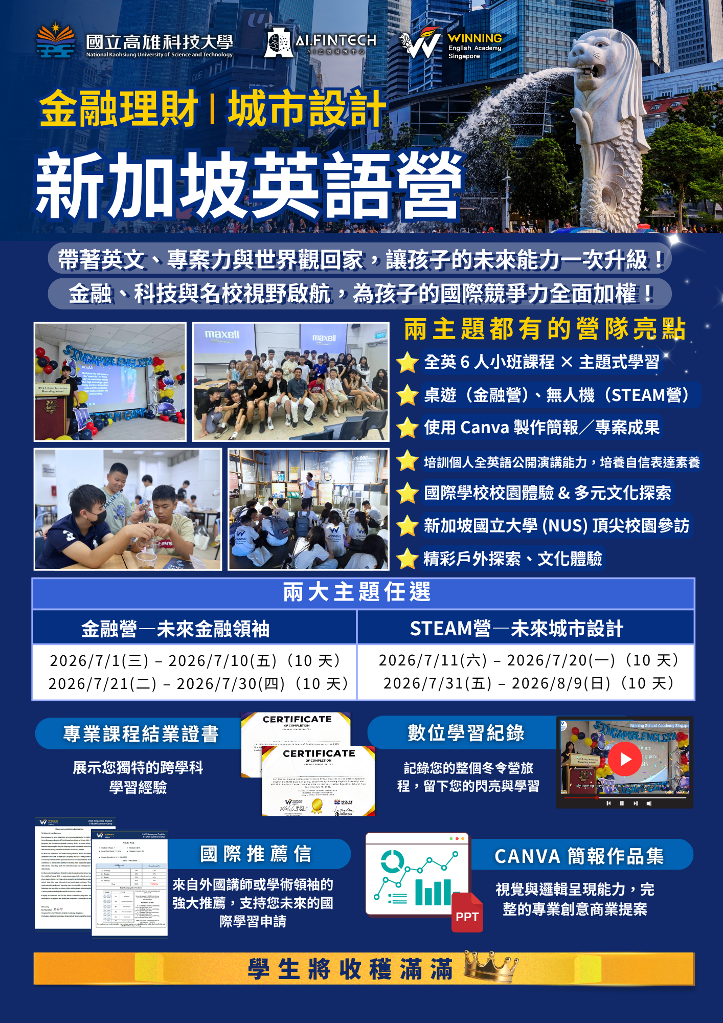 ✅ 名校深度體驗:介紹新加坡國立大學 (NUS) 參訪行程對學生的啟發。