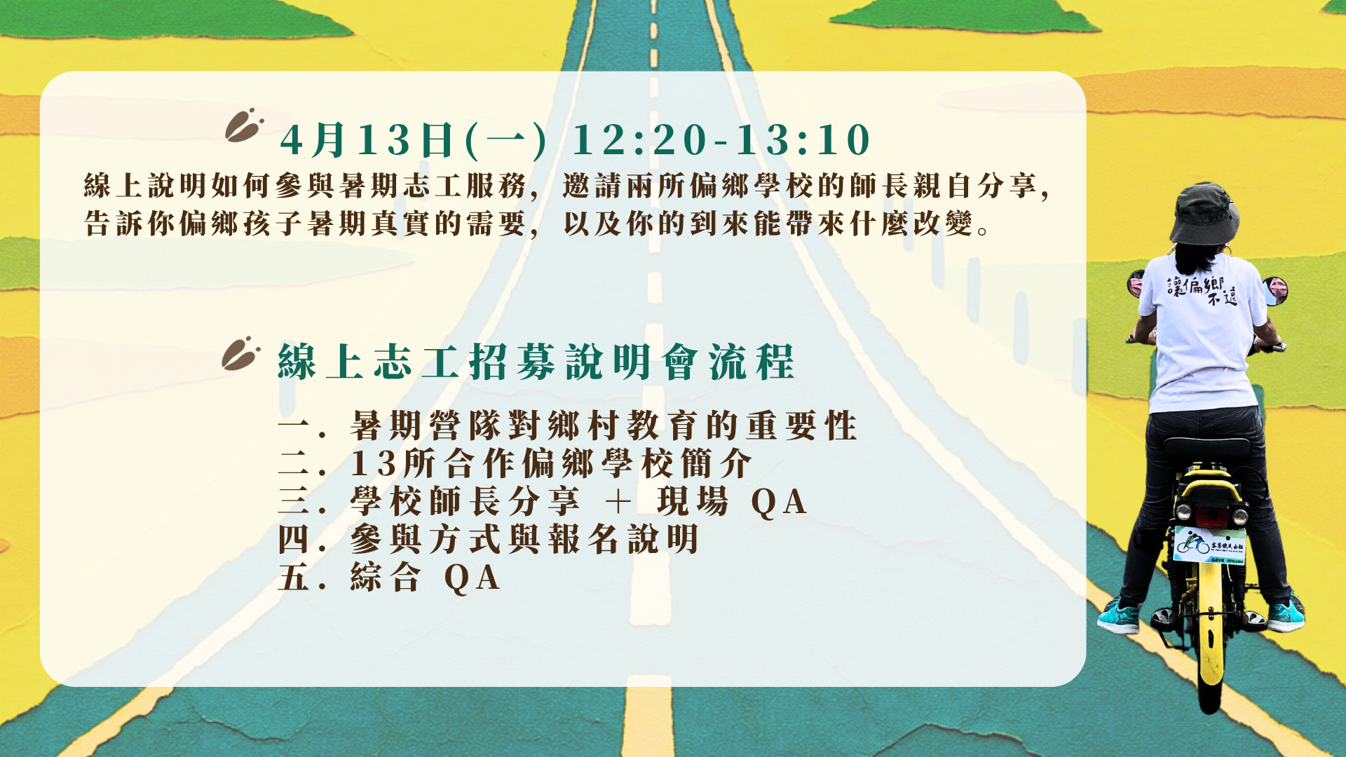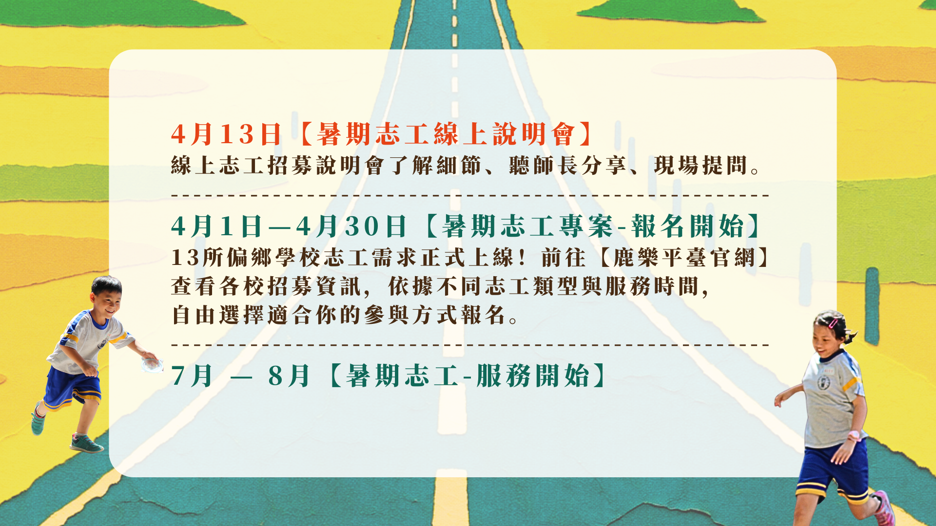 ☀️☀️想清楚了解細節或參與方式,先來參加📅4/13 志工招募線上說明會 ☀️☀️