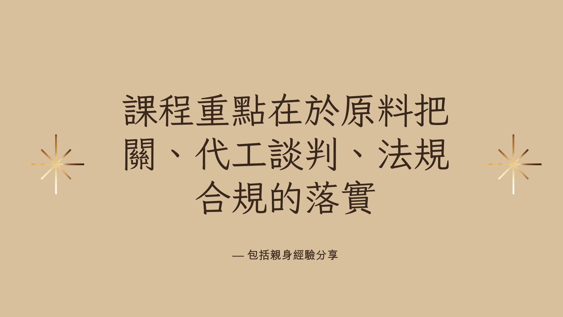 【從原料篩選 X 代工委託 X 法規合規的實戰全流程】