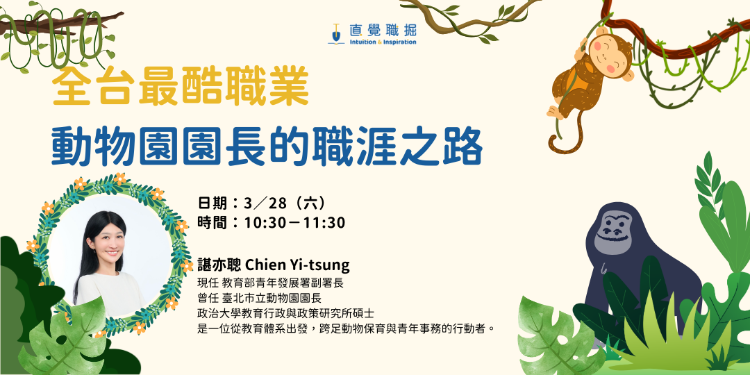 職涯不一定是直線,而是一段不斷探索與跨越的旅程。本場講座邀請諶亦聰 Chien Yi-tsung,一名橫跨教育、動物保育與青年政策領域的實務工作者,從一線教育現場到擔任動物園園長,再走入青年事務體系,帶家長看見「陪孩子長大」可以有更多可能。透過真實經驗,分享如何陪伴孩子探索興趣、勇於嘗試、面對試錯,培養自主動機、自信與行動力。