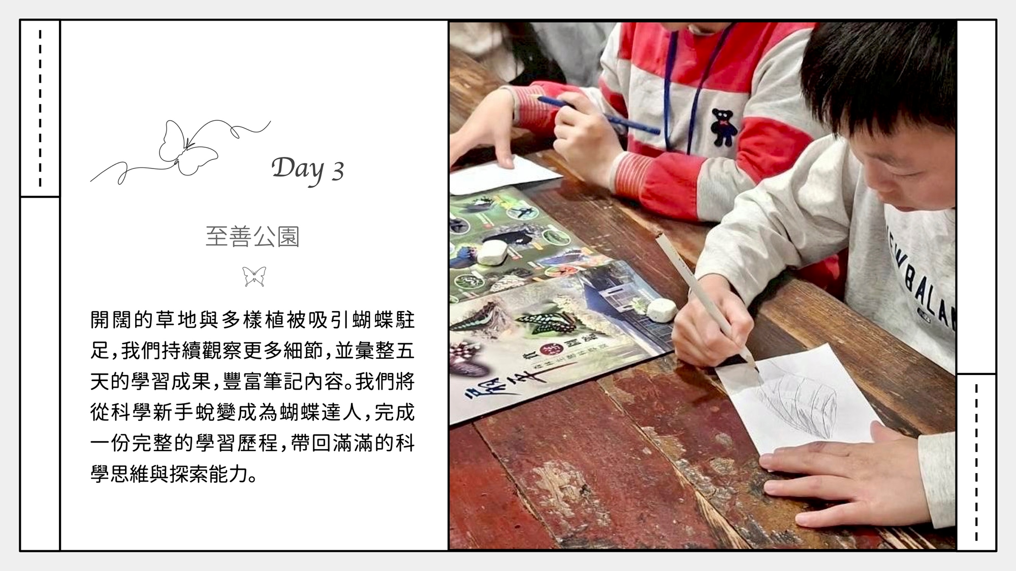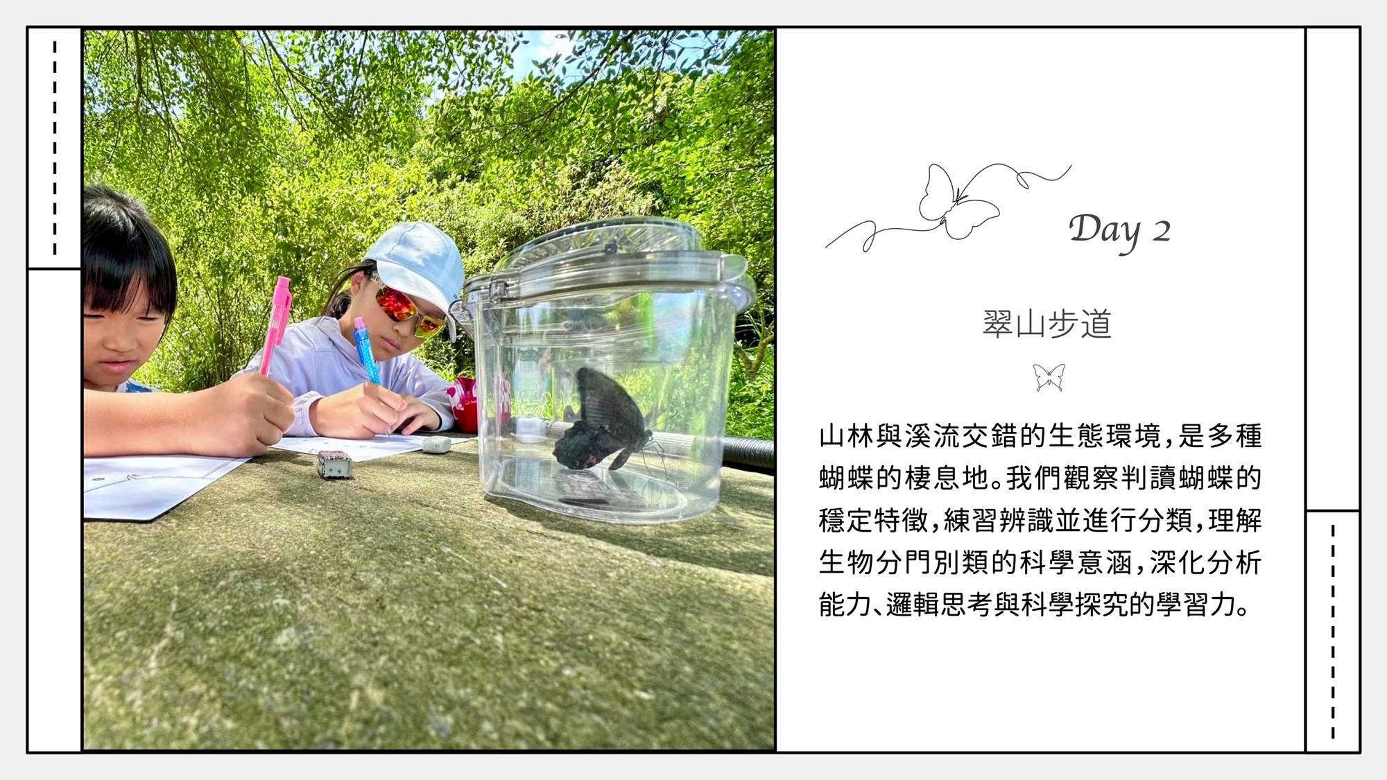 ✔ 科學踏查:體驗描繪鱗翅目昆蟲特徵,把觀察變成科學記錄。