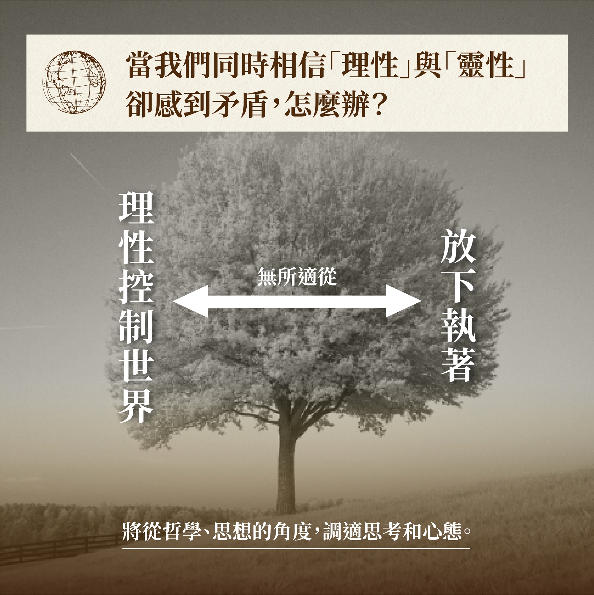 當「理性控制世界」與「順應自然/放下執著」同時存在於我們身上,衝突並不是偶然,而是一種結構性的結果。我們將從哲學、思想的角度,調適思考和心態,找回獨立、自由生活的實踐方式。