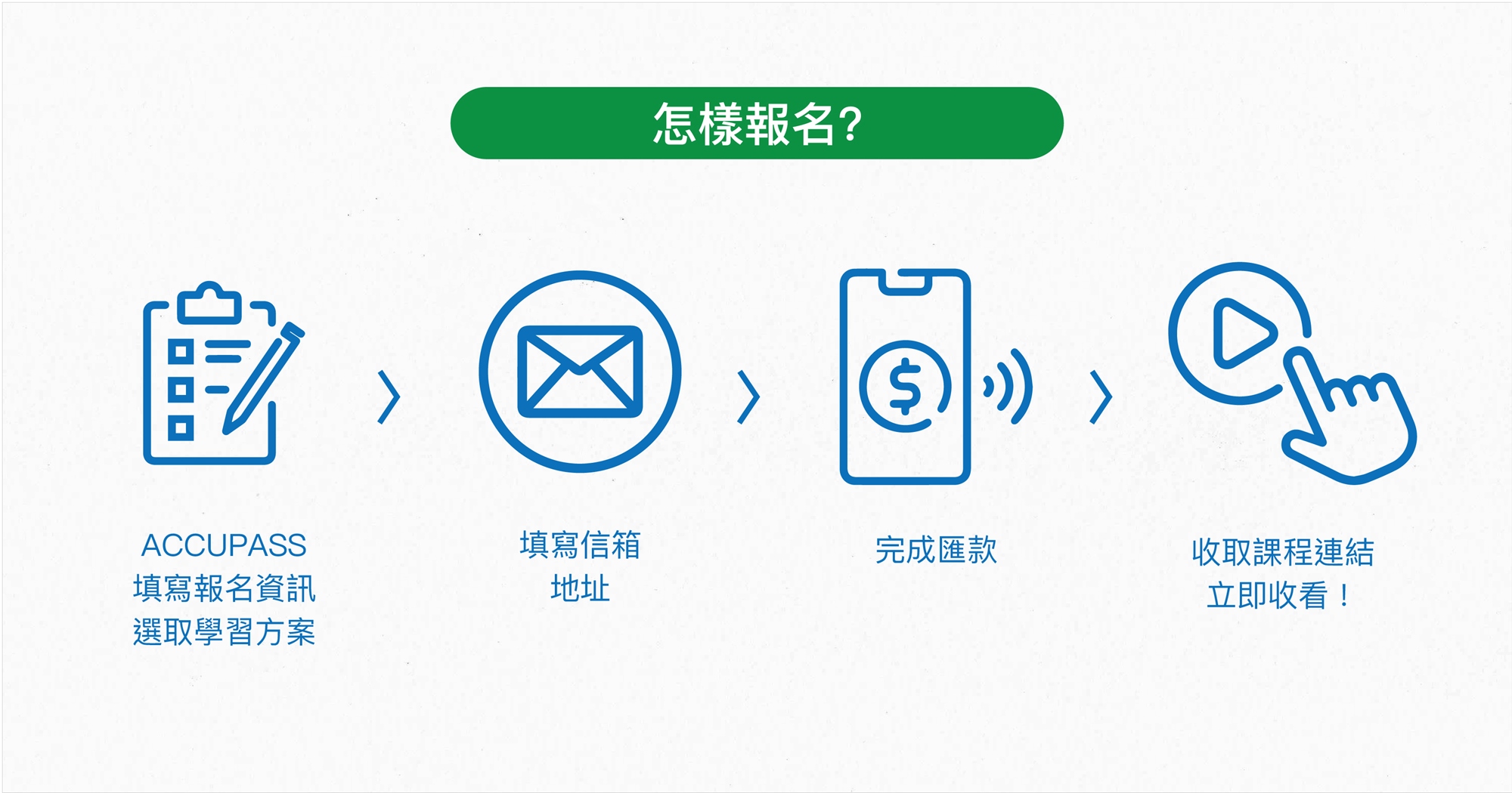 購課後會先由ACCUPASS寄送信件,另外會由書院另外於三日內發送課程兌換通知郵件,引導您如何進行課程觀看。請以書院寄送信件內容之代碼為主,課程若三日內未收到郵件通知,請聯繫我們。