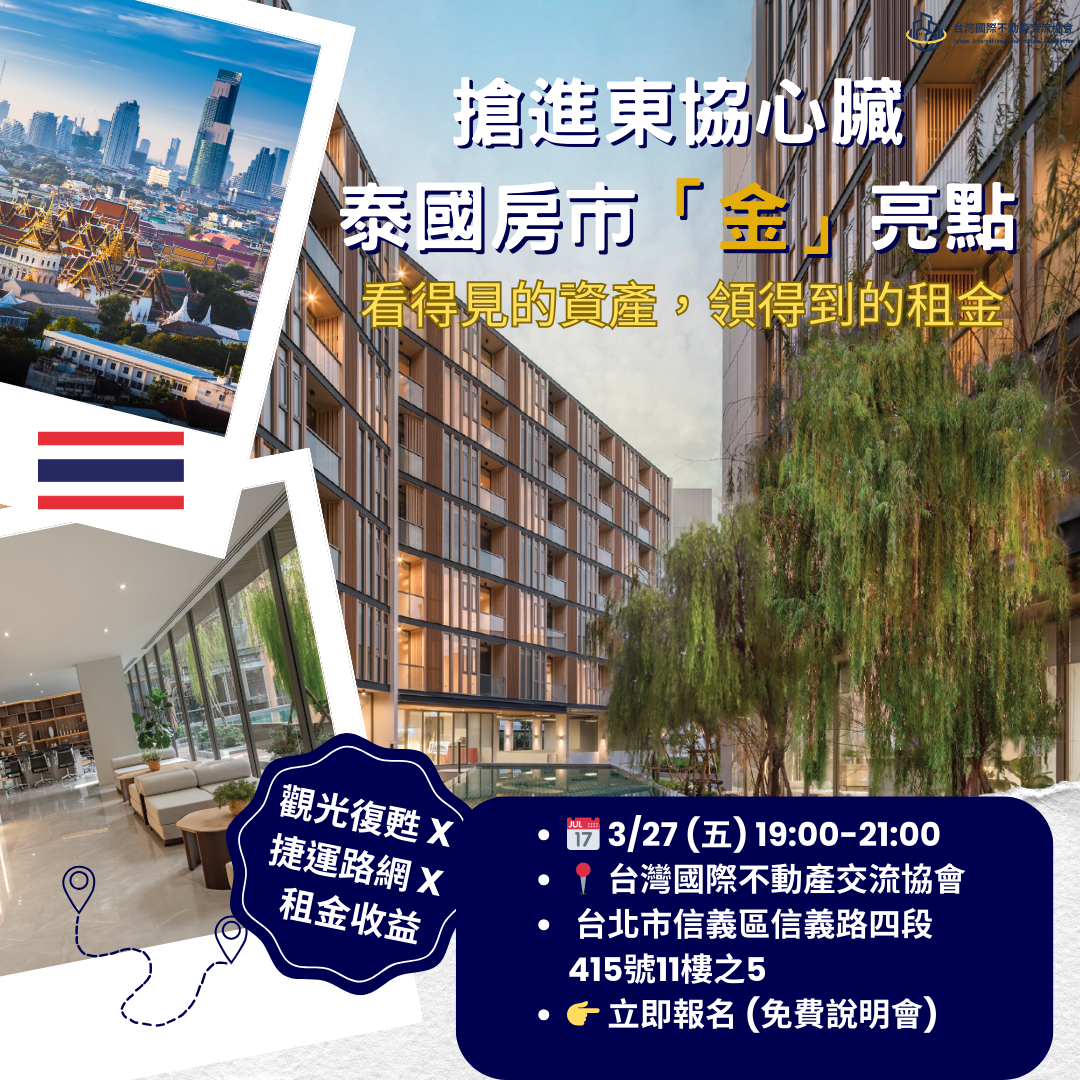 【關於本次分享會】 曼谷房市正迎來新一輪的結構性補漲!從頂級富人區的時尚保值性,到明星國際學區的剛性租賃需求,泰國置產已不再只是旅遊的附屬品,而是資產配置的重要一環。