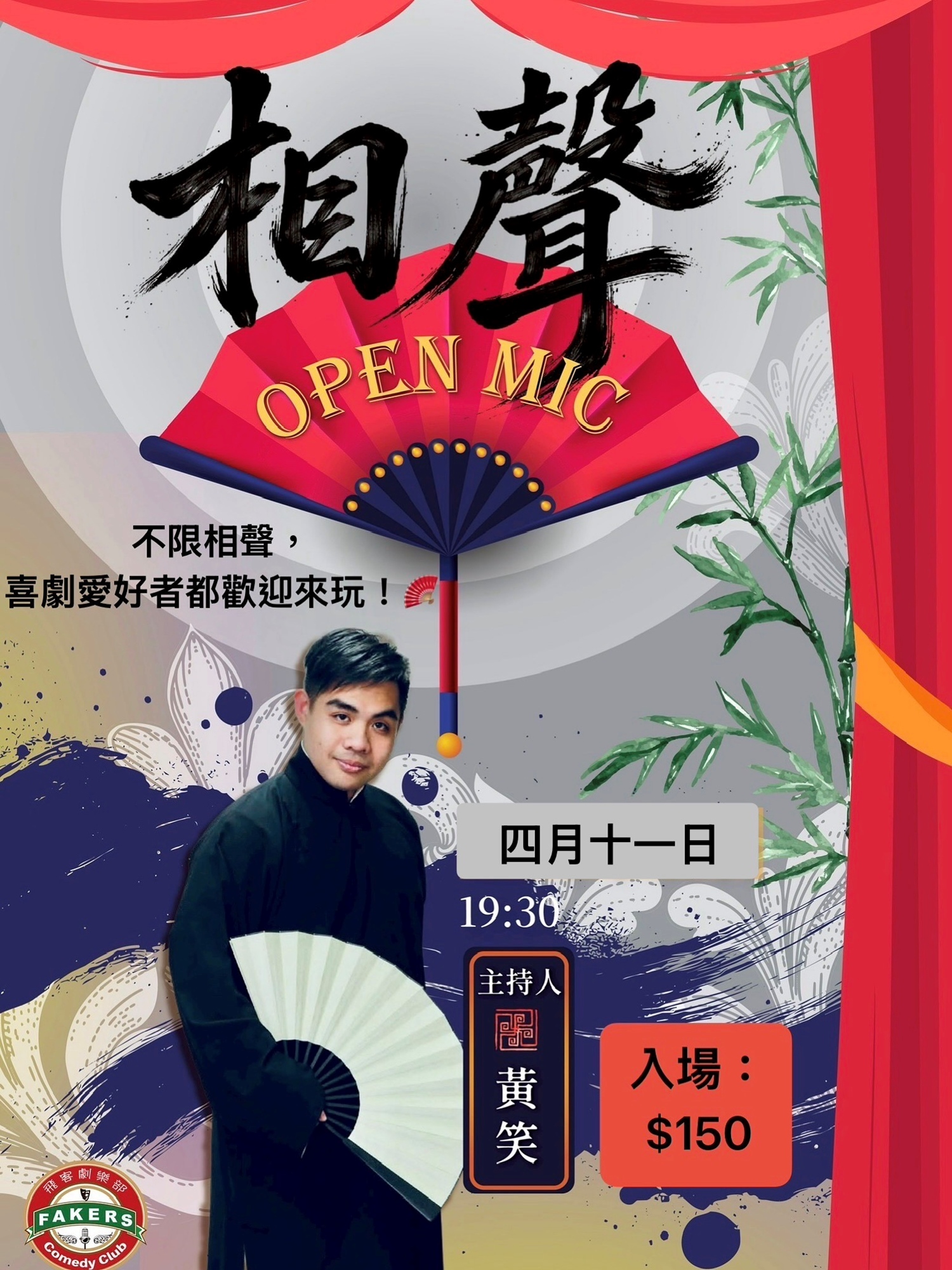 飛客俱樂部 04/11(六)19:30 特別邀請相聲演員黃笑主持相聲 Open Mic, 歡迎對相聲有興趣的朋友來! 看一次少一次!機會難得!不要錯過!