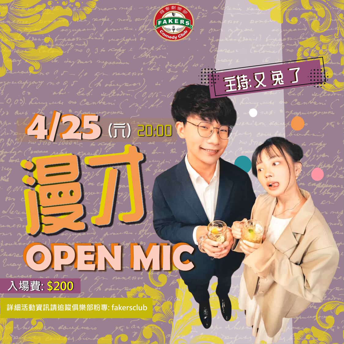 2026飛客劇樂部 4月份特邀《又兔了》來主持漫才Open Mic~!機會難得!快來捧場!
