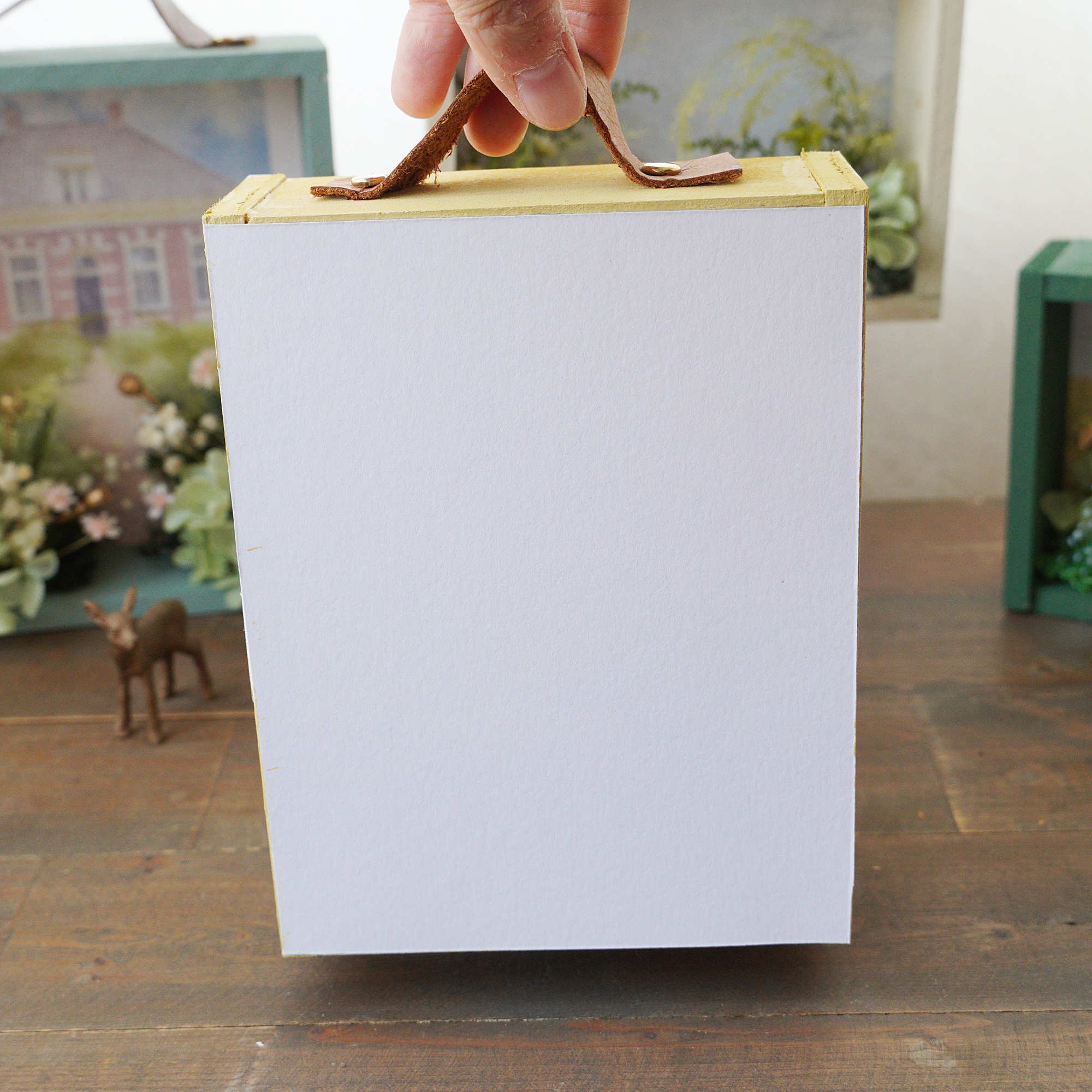 ▼此為木框背面的樣子 ▼使用透明貼紙輸出提供的照片檔後,會貼在紙板上。