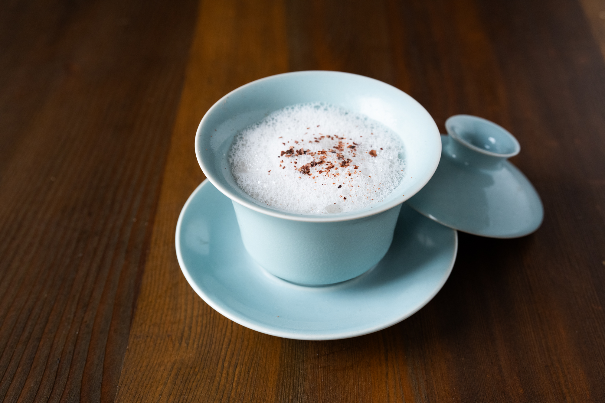 可可豆茶加麻油奶泡。