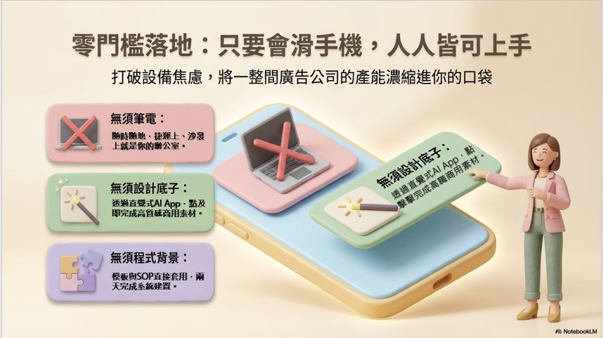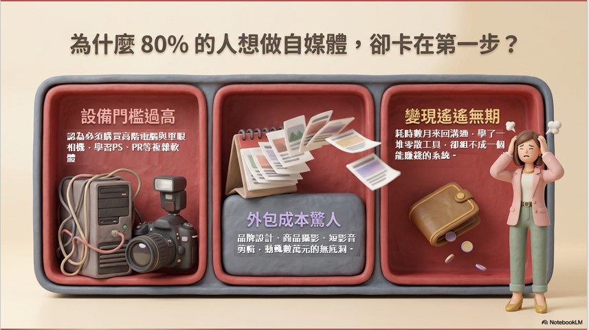 ✅ 一套 AI 內容生產系統:未來產製素材成本趨近於 0。