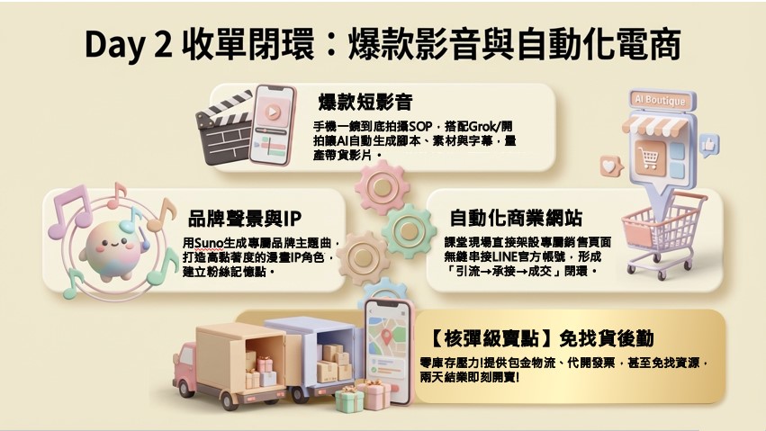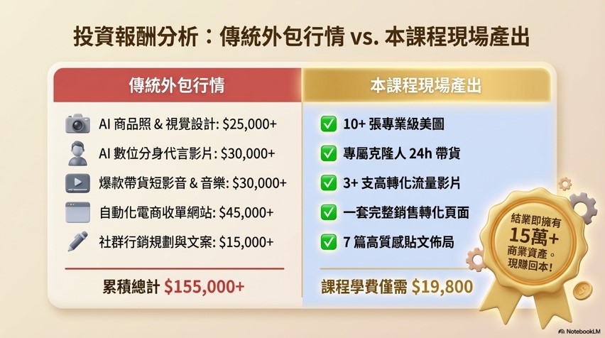 完成兩天實戰後,你將直接帶走以下總價值超過 NT$ 155,000 的商業資產: