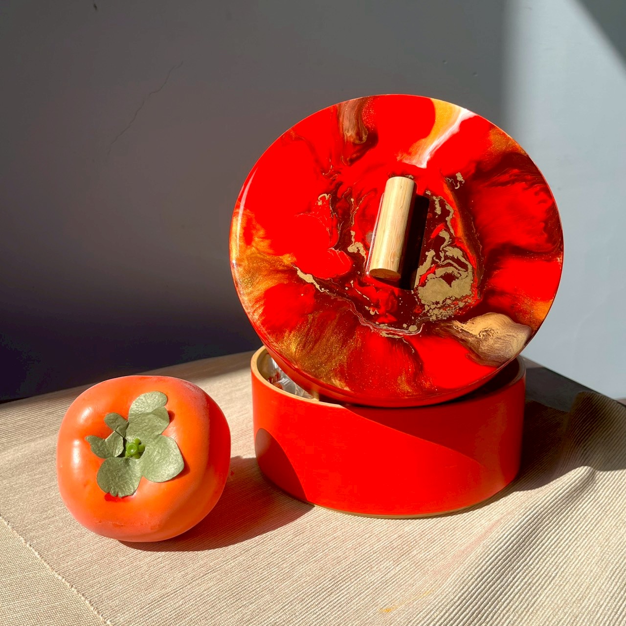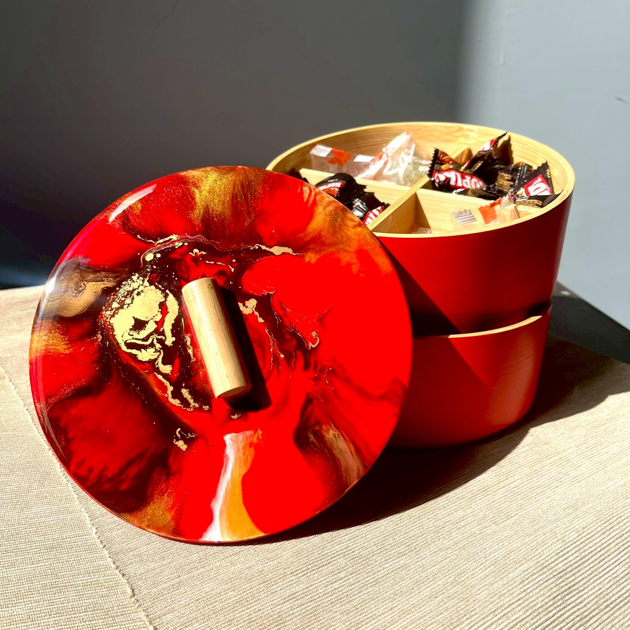 ・13.5cm(高) x 17.5cm(直徑)-流光樹脂蓋& 竹製分格攢盒 2層 ✦ 1個