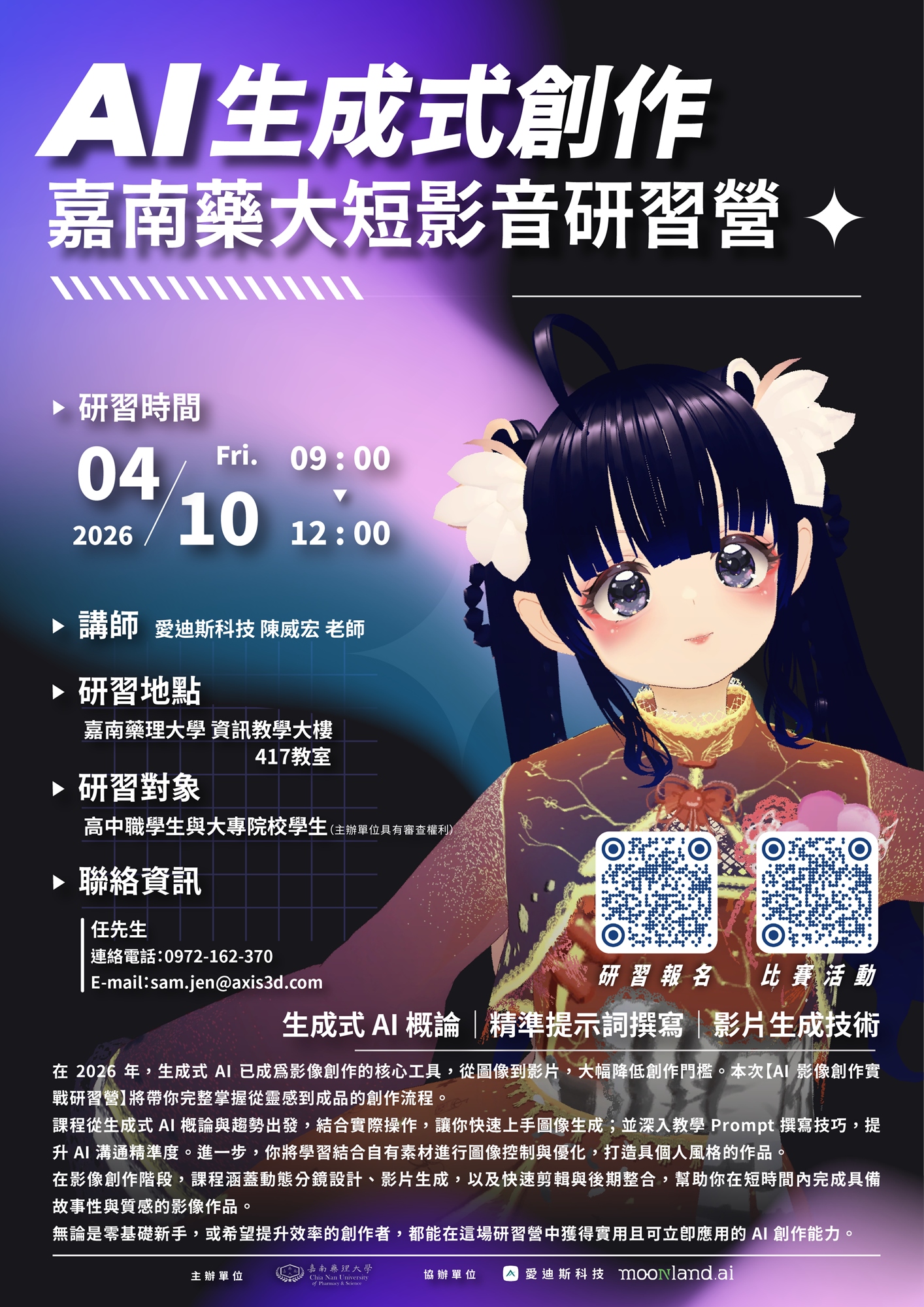 一、活動主題:AI生成式創作 嘉南藥大短影音研習營