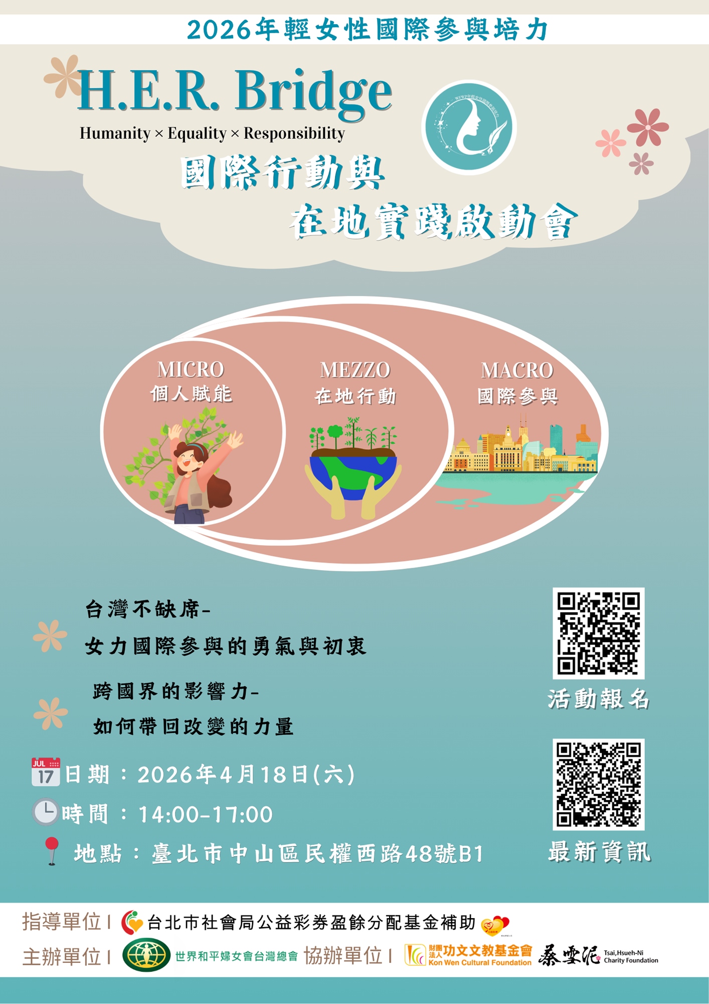 • 活動名稱:H.E.R. Bridge:國際行動與在地實踐啟動會