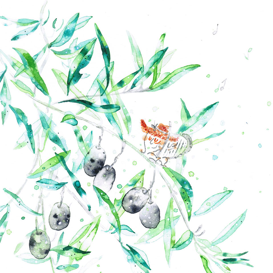 橄欖葉摩擦的沙沙聲,果實碰撞的咚咚聲,還有我彈奏的豎琴聲。