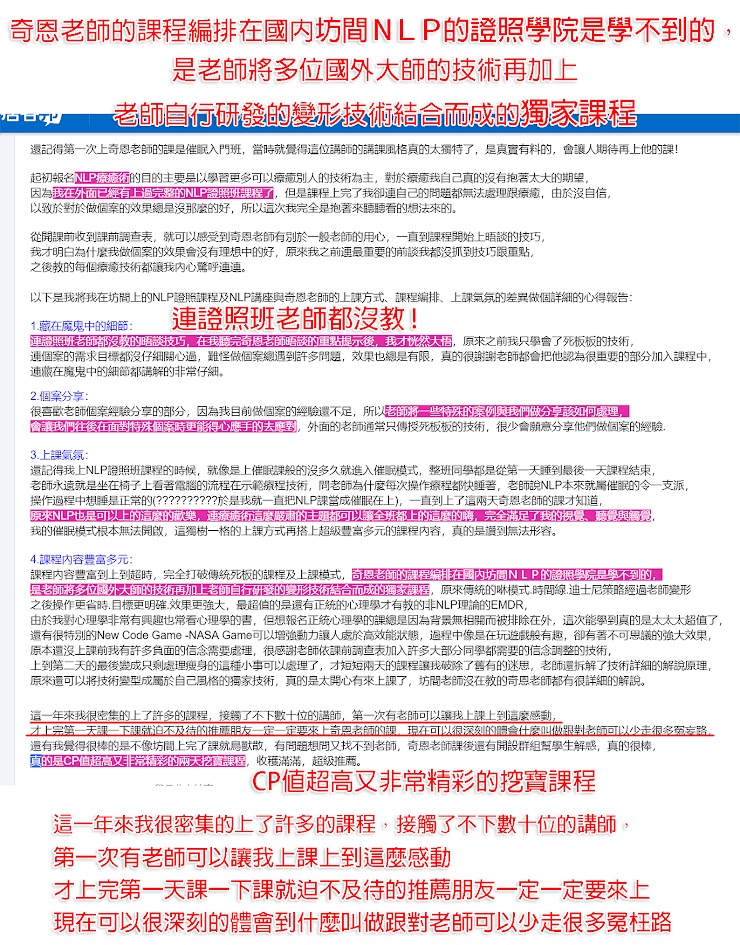 💥️兩岸極少數能精通各大NLP流派,同時不受流派框架限制之講師