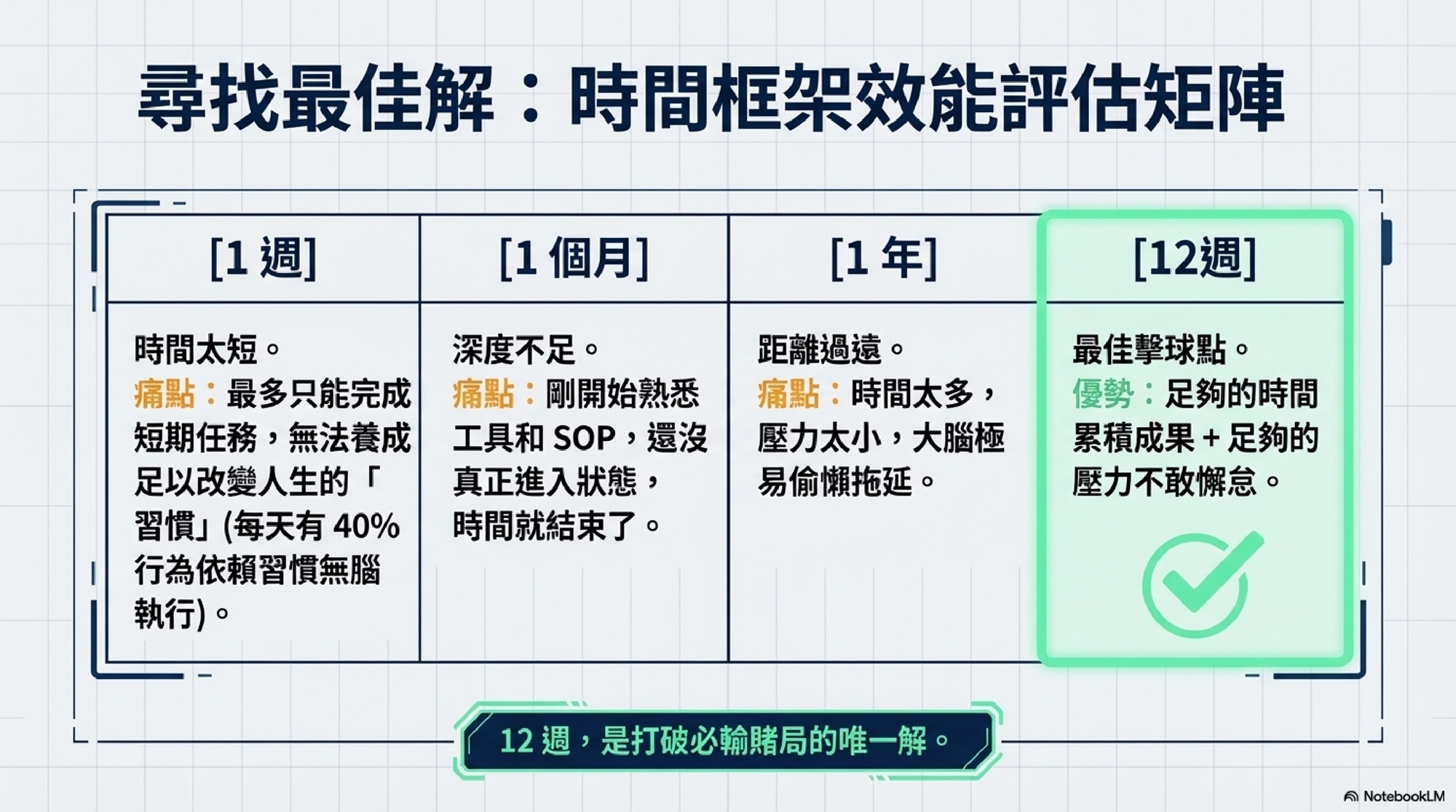 如果你現在有一個一直想做、卻一直拖著的目標,試試把它放進 12 週的框架裡。