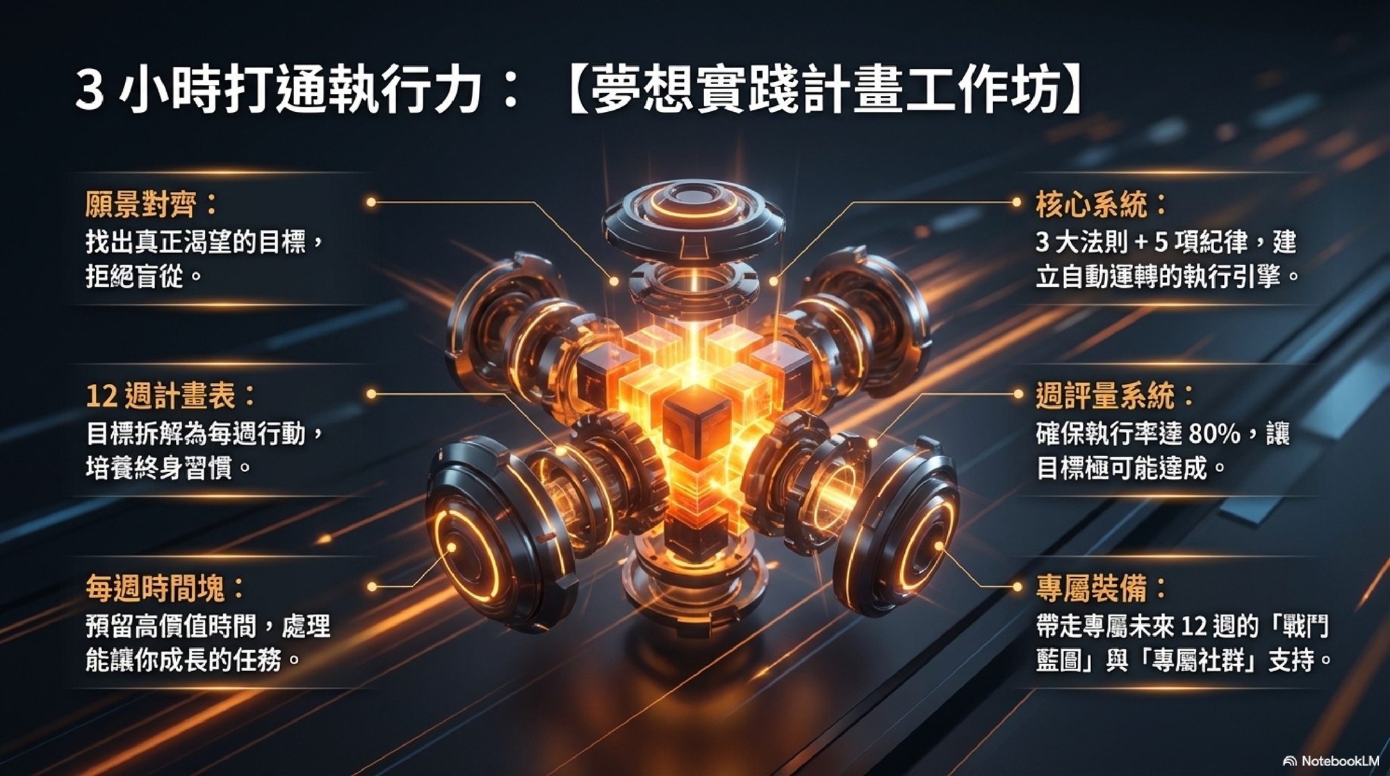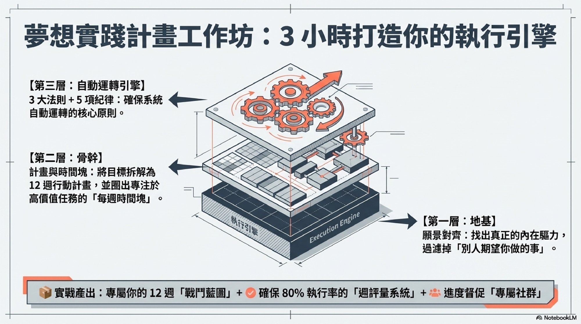 這不只是一堂講理論的課,而是一個帶領你現場拆解目標、現場寫出計畫、現場奪回生活主導權的實戰工作坊。