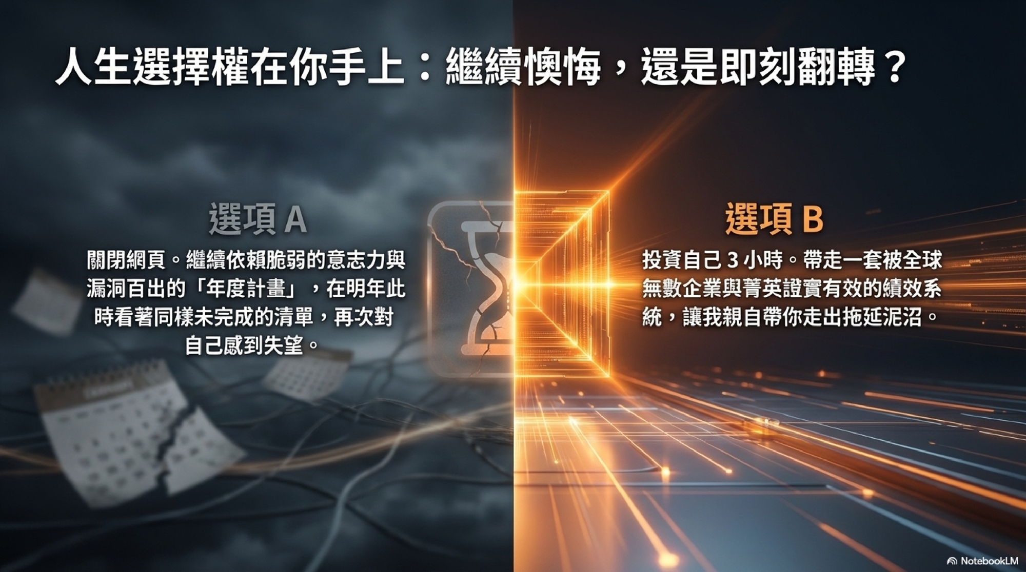 選項 B:投資自己 3 小時時間。帶走一套被全球無數企業與菁英證實有效的績效系統,讓我親自帶你走出拖延的泥沼。