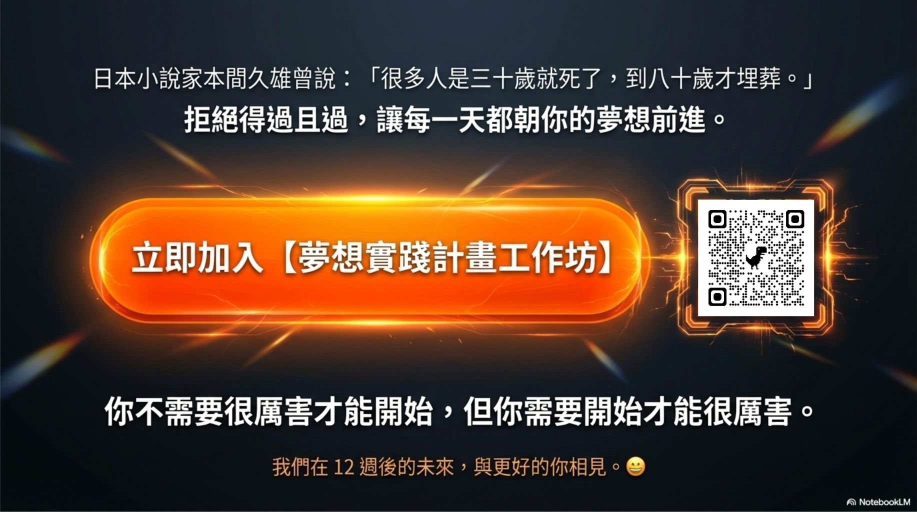 這工作坊只給準備好要改變自己的人,就讓我們用 3 小時時間規劃出能改變人生的 12 週計畫,並在執行路上相見與更好的你相見吧。😁