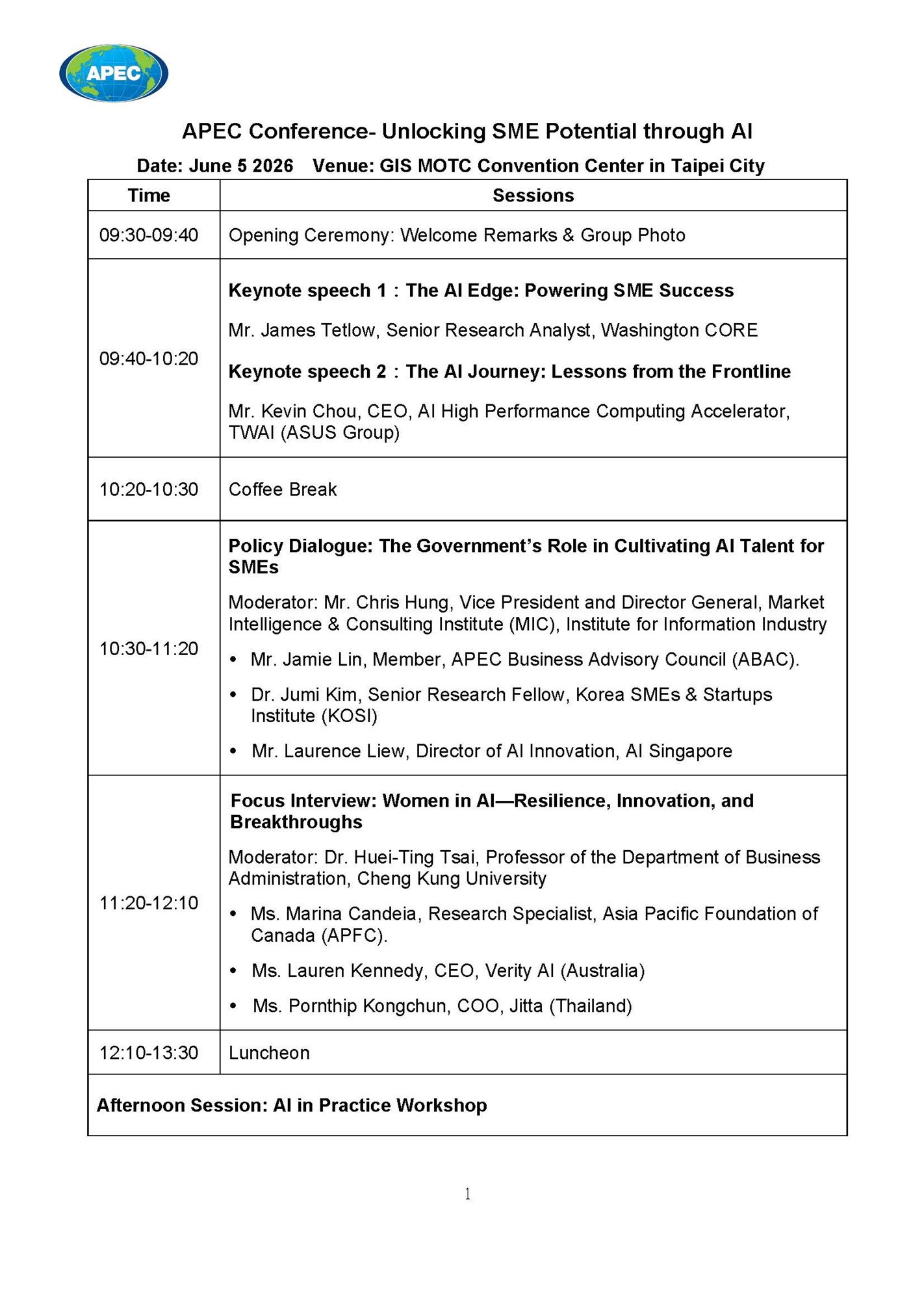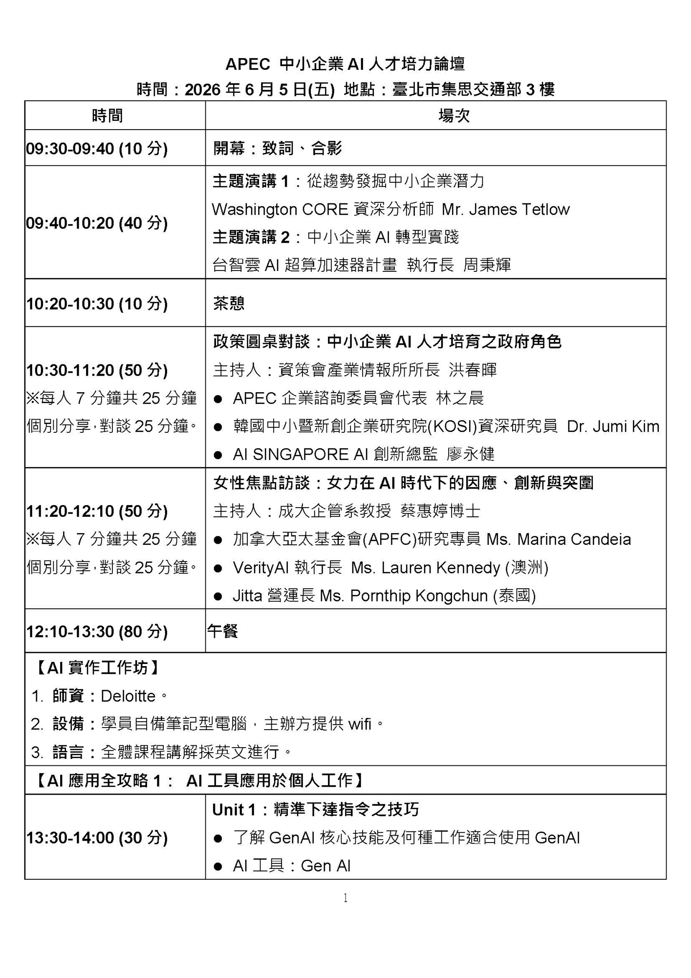 APEC中小企業AI人才培力論壇 APEC Conference- Unlocking SME Potential through AI
