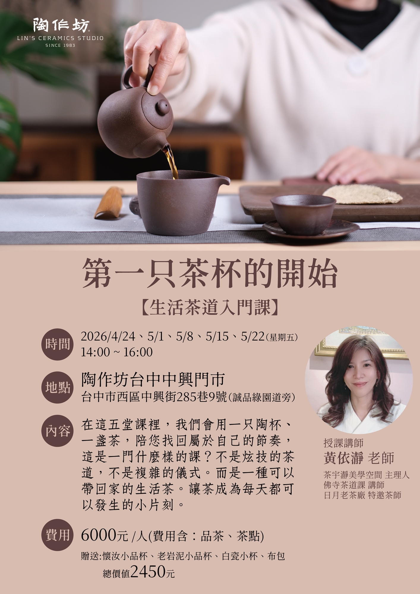 課程加贈 : 懷汝小品杯*1 +老岩泥小品杯*1+白瓷小杯*1 +布包*1 (總價值2450元)