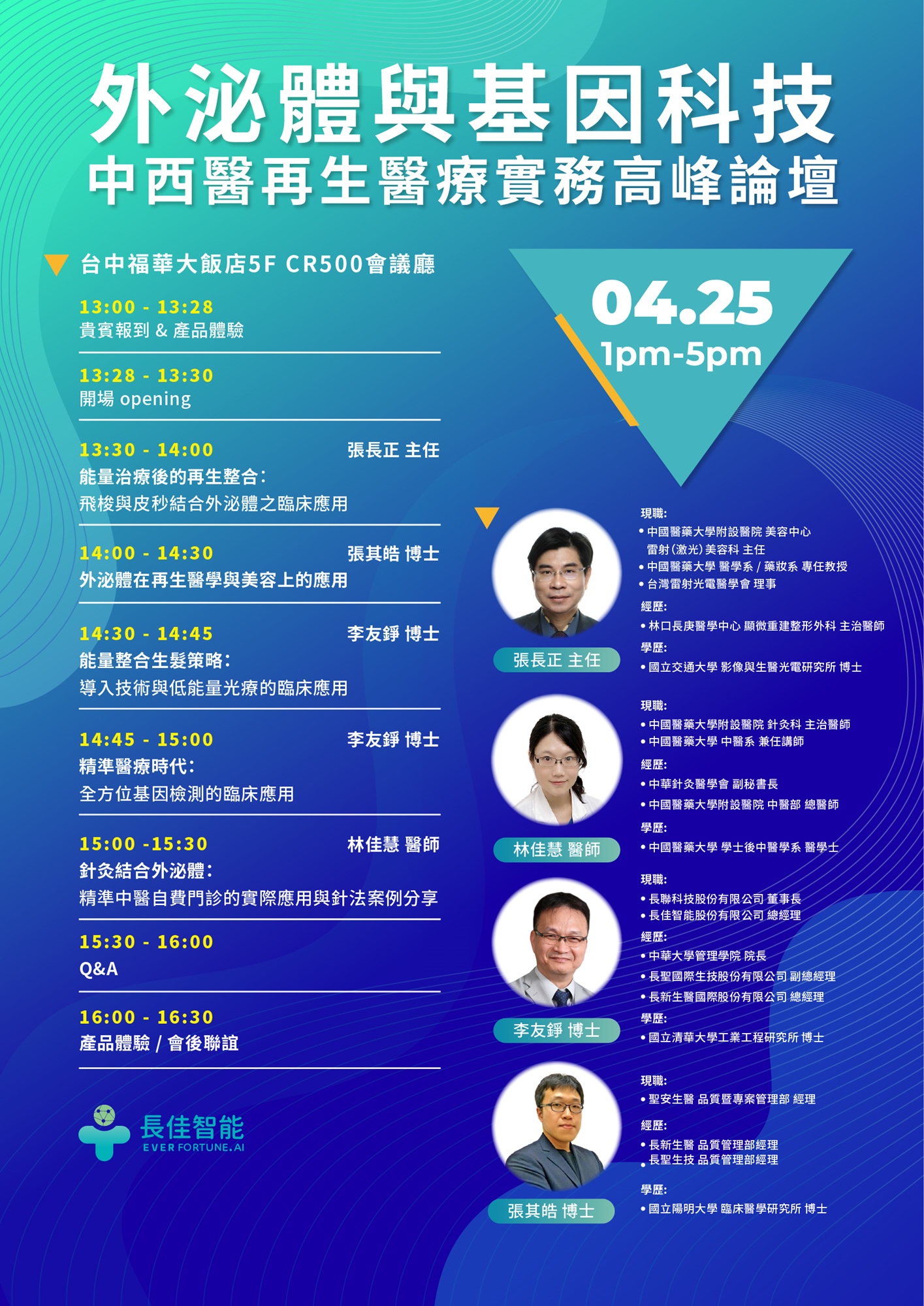 - 學術思想激盪: 深度探討針灸與外泌體的跨界合作,為中西醫結合應用提供具備實戰參考價值的商業模式。