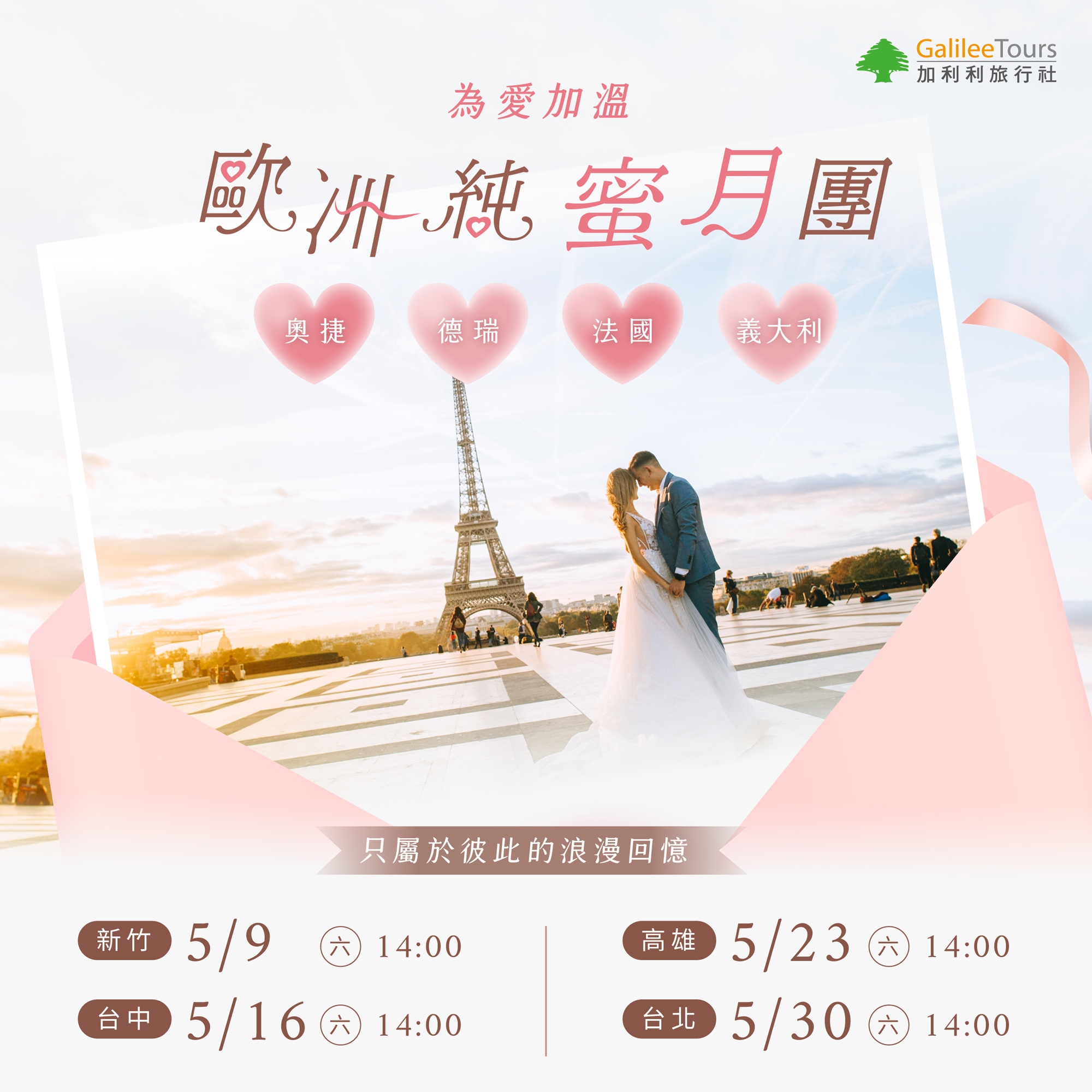 免費講座|歐洲純蜜月團,只屬於彼此的浪漫回憶,為愛加溫!|新竹0509