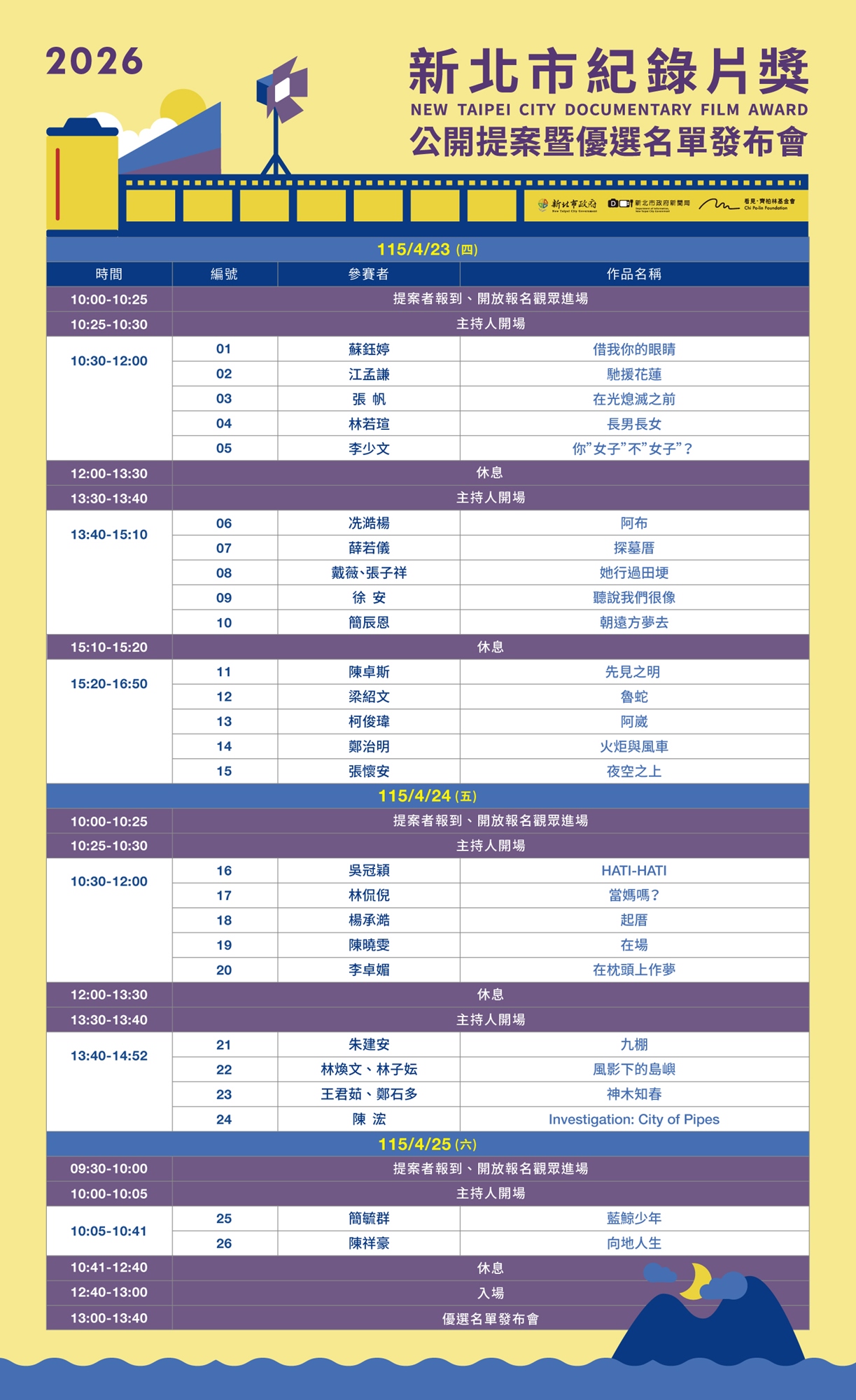 ❖ 2026新北市紀錄片獎 公開提案會 ❖