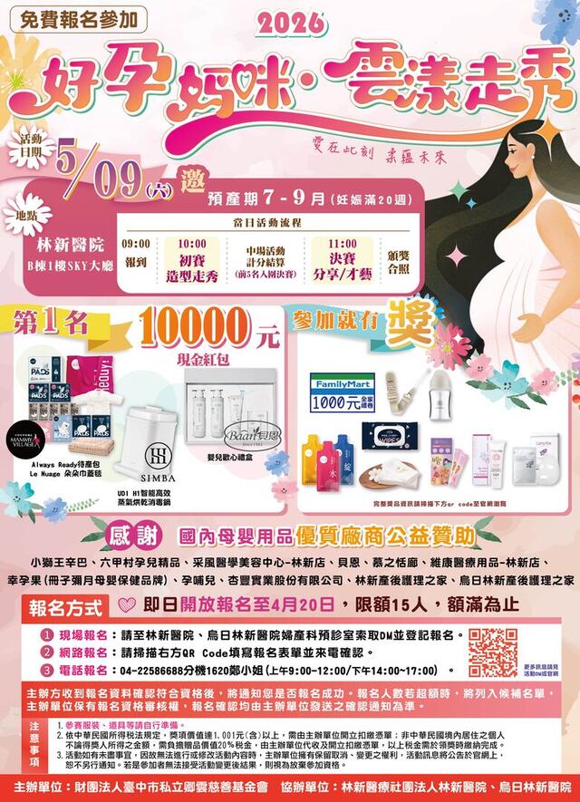 🌸對象:邀請5月時妊娠滿20週(預產期7-9月)孕媽咪參與
