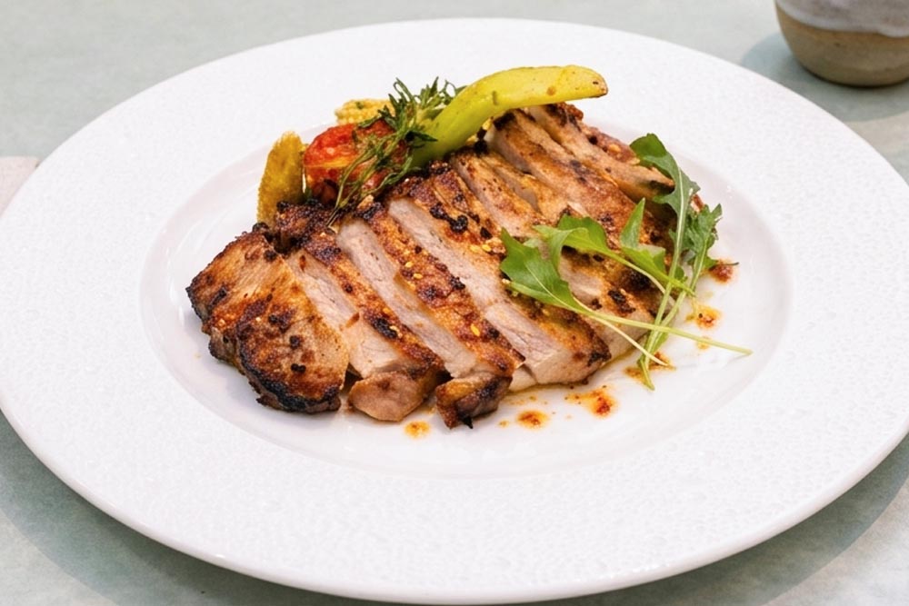 選用油花分佈均勻的梅花豬排,透過簡單香料醃製與煎製,輕鬆做出外層微酥、內部多汁的口感。搭配近年流行的「甜辣(Swicy)」風味,以辣味蜂蜜醬點綴,讓肉香更加突出、層次更豐富。整體風味鮮明又具記憶點,是一道兼具風格與實用性的餐酒館主餐選擇。