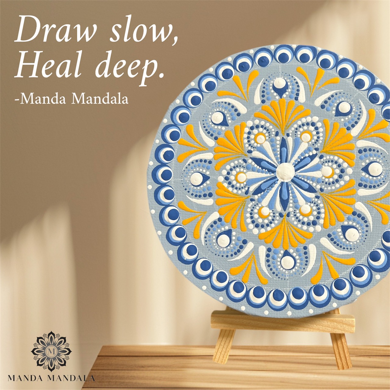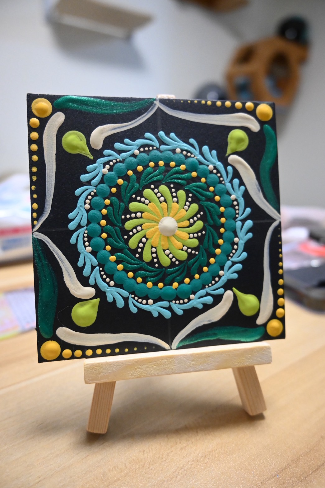 ❁驚艷:看著我的成品,我有滿滿的成就感~跟著老師的步驟和引導,居然完成一幅有模有樣、我自己真心喜歡的曼陀羅作品。每個人從挑喜歡的顏色、構思布局、正式下筆⋯⋯完成的作品都是獨一無二的;再經過老師的色彩能量解讀,我就知道當下為什麼會畫出這樣的作品了。