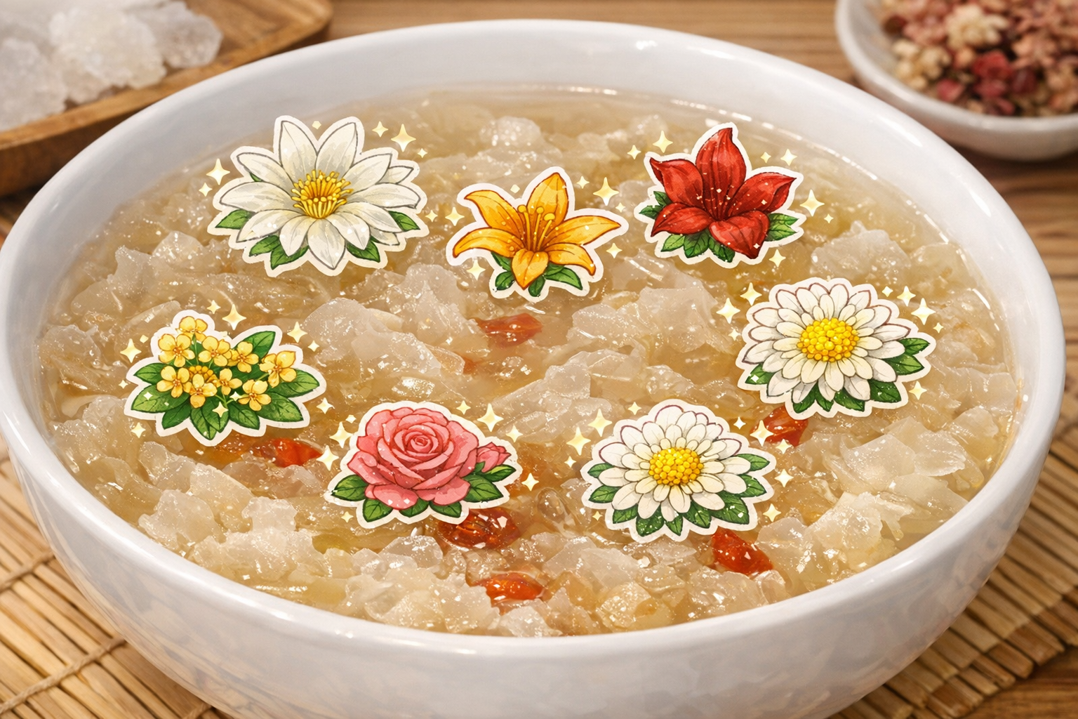 體驗這段屬於中心新村的獨特花食記憶。現場備有冰糖木耳,邀請您在故事分享中,運用現場準備的可食花材,親手調配出一碗視覺優雅的客製化甜點。