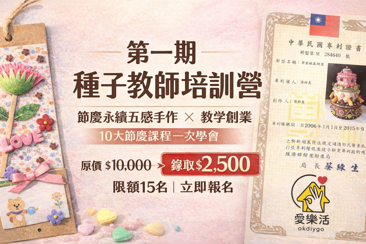 如果你不只是想學手作,而是想培養 教學能力、帶課能力、活動設計能力與創業發展潛力,那麼這一期就是很值得把握的開始。
