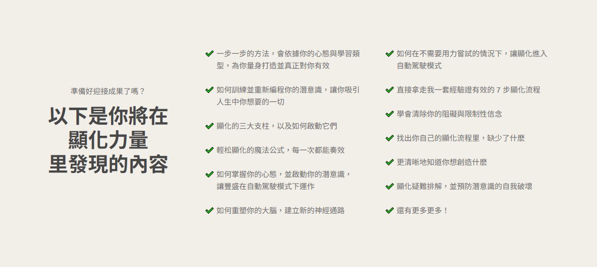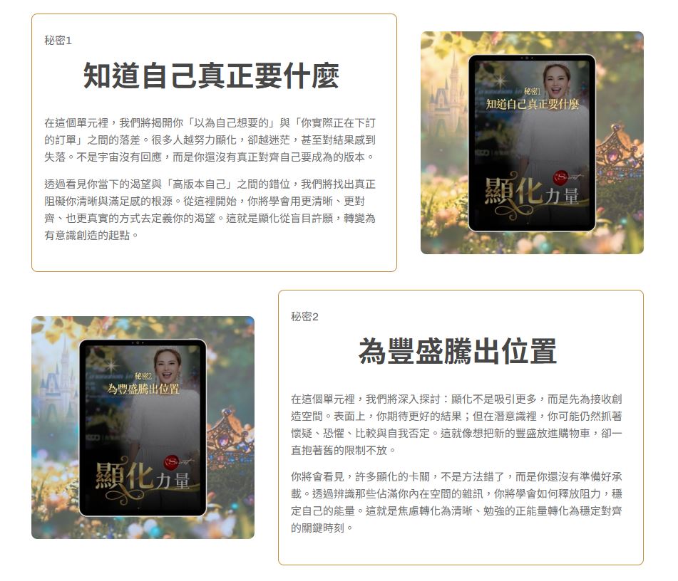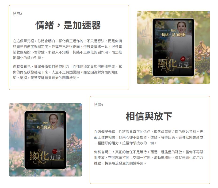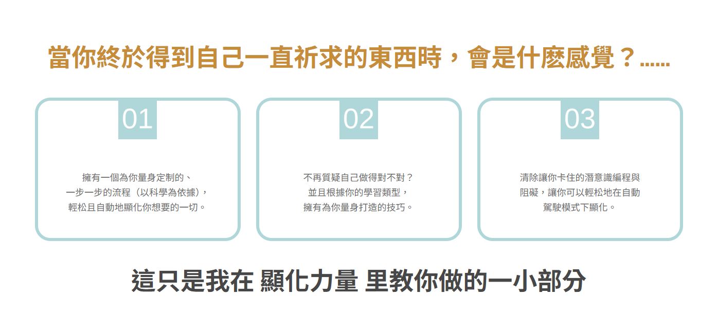 課程詳細介紹網站﹔顯化力量,送精美學習手冊