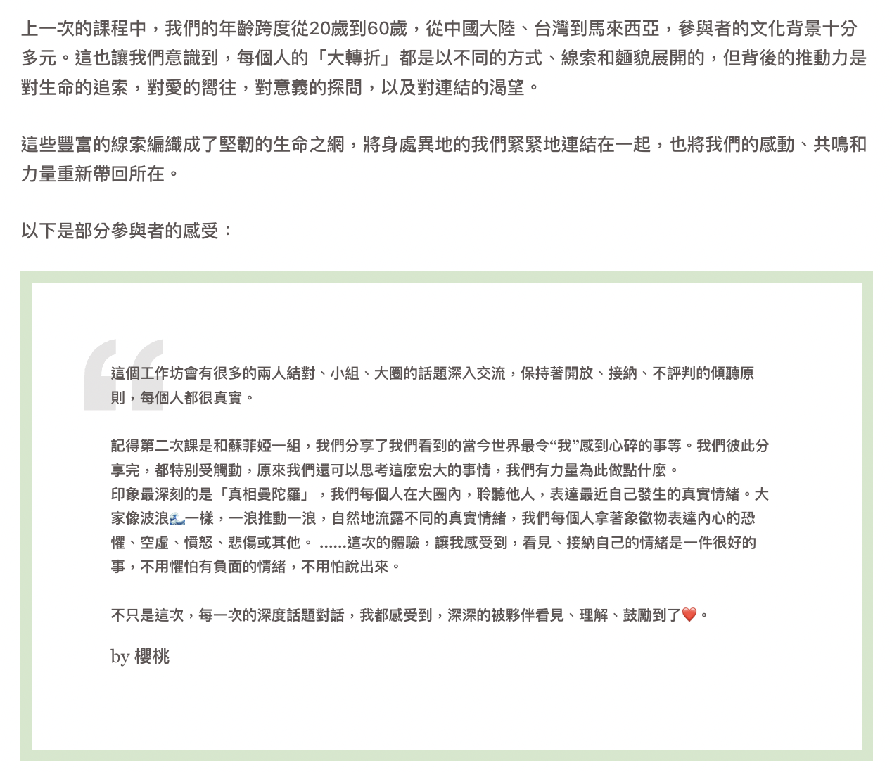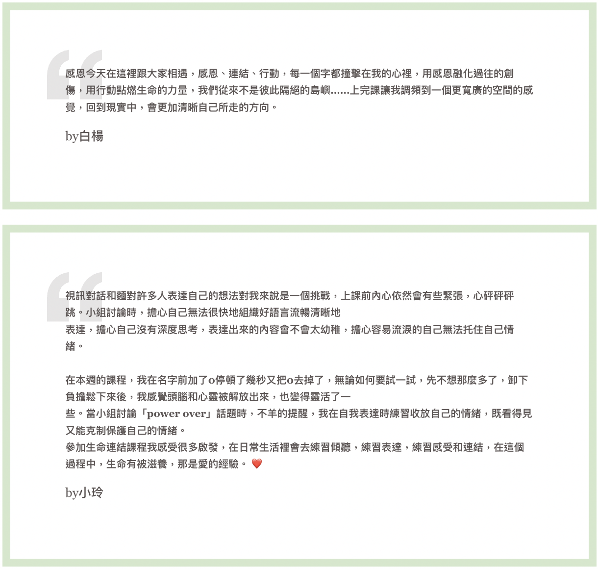 正是這些真實的體悟,讓我們想要開啟這場「生命再連結線上工作坊」——