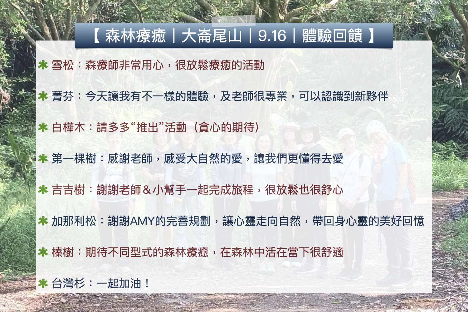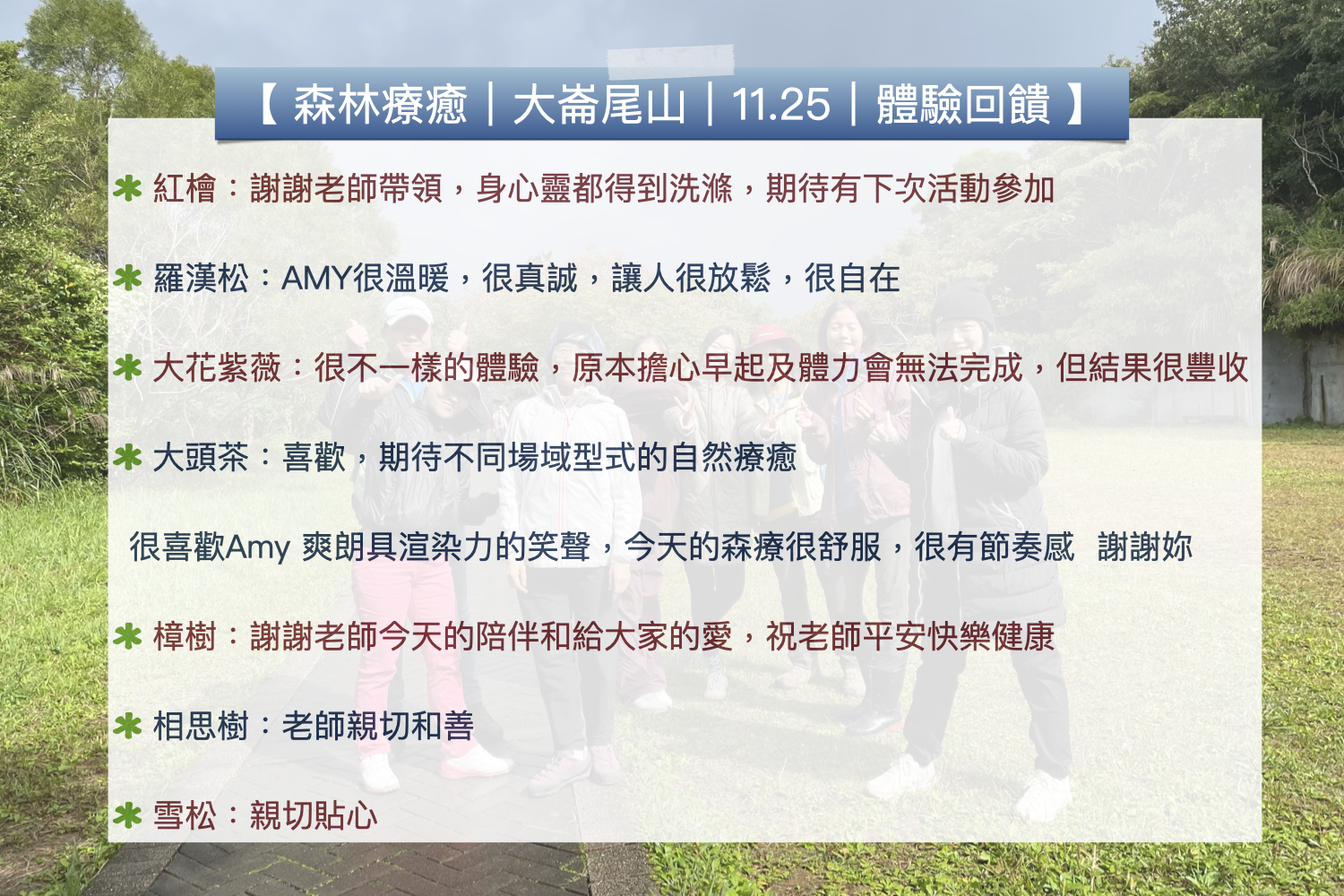 🌳 2023-2025 大崙尾山森療體驗回饋