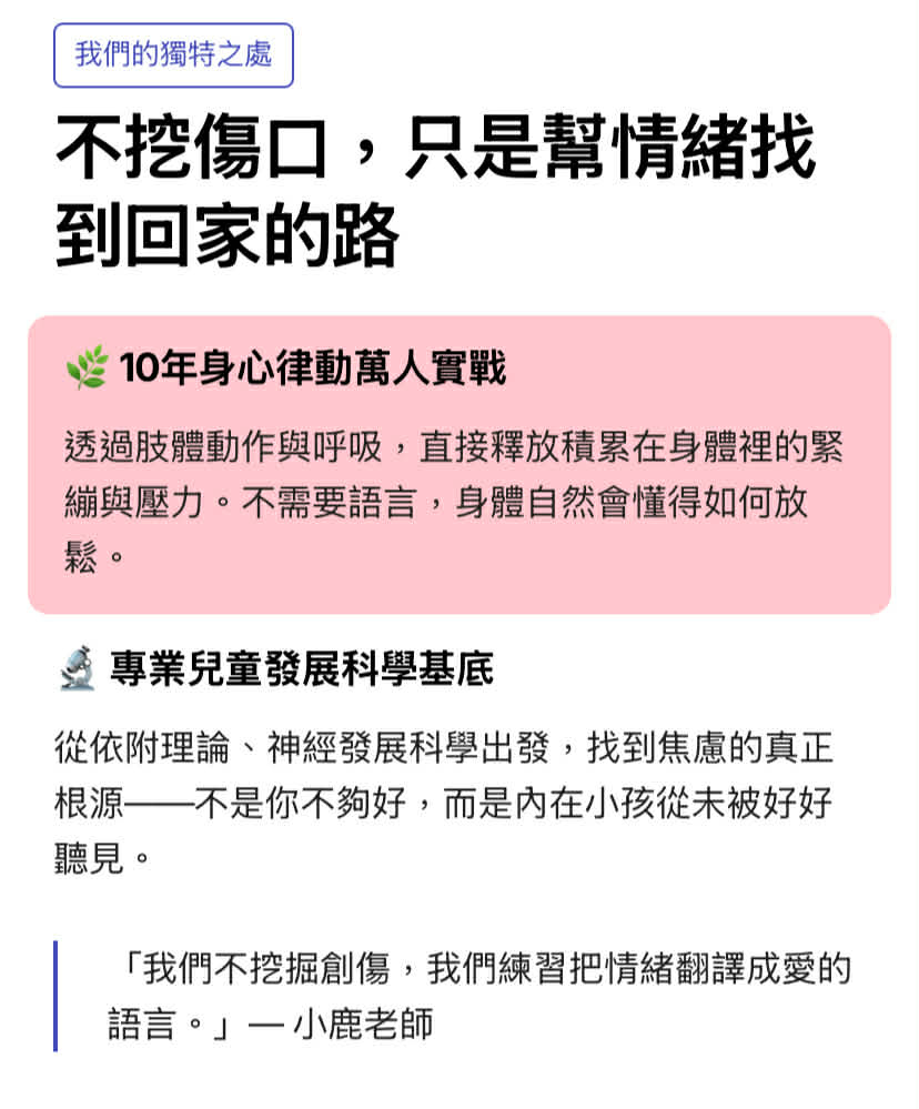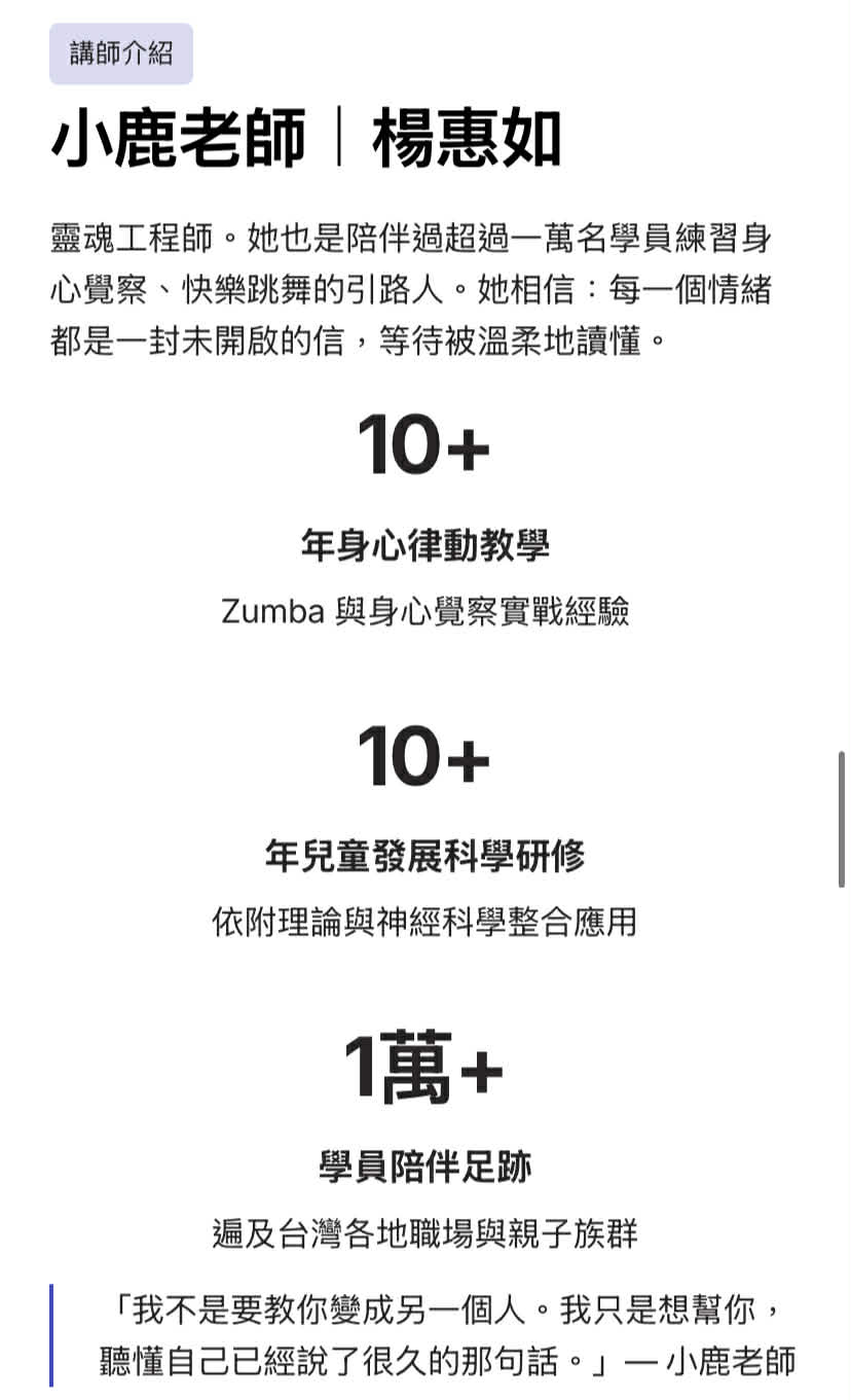 小鹿老師致力於將深奧的心理機制轉化為溫暖、聽得懂且帶得走的「生活語言」。她深信,每個人都有屬於自己的成長時鐘,只要我們願意帶上好奇心,理解就是最好的療癒。