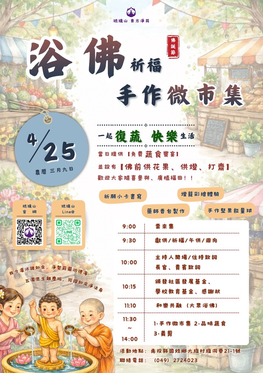 地點|南投琉璃山東方淨苑 ( 浴佛祈福手作微市集)