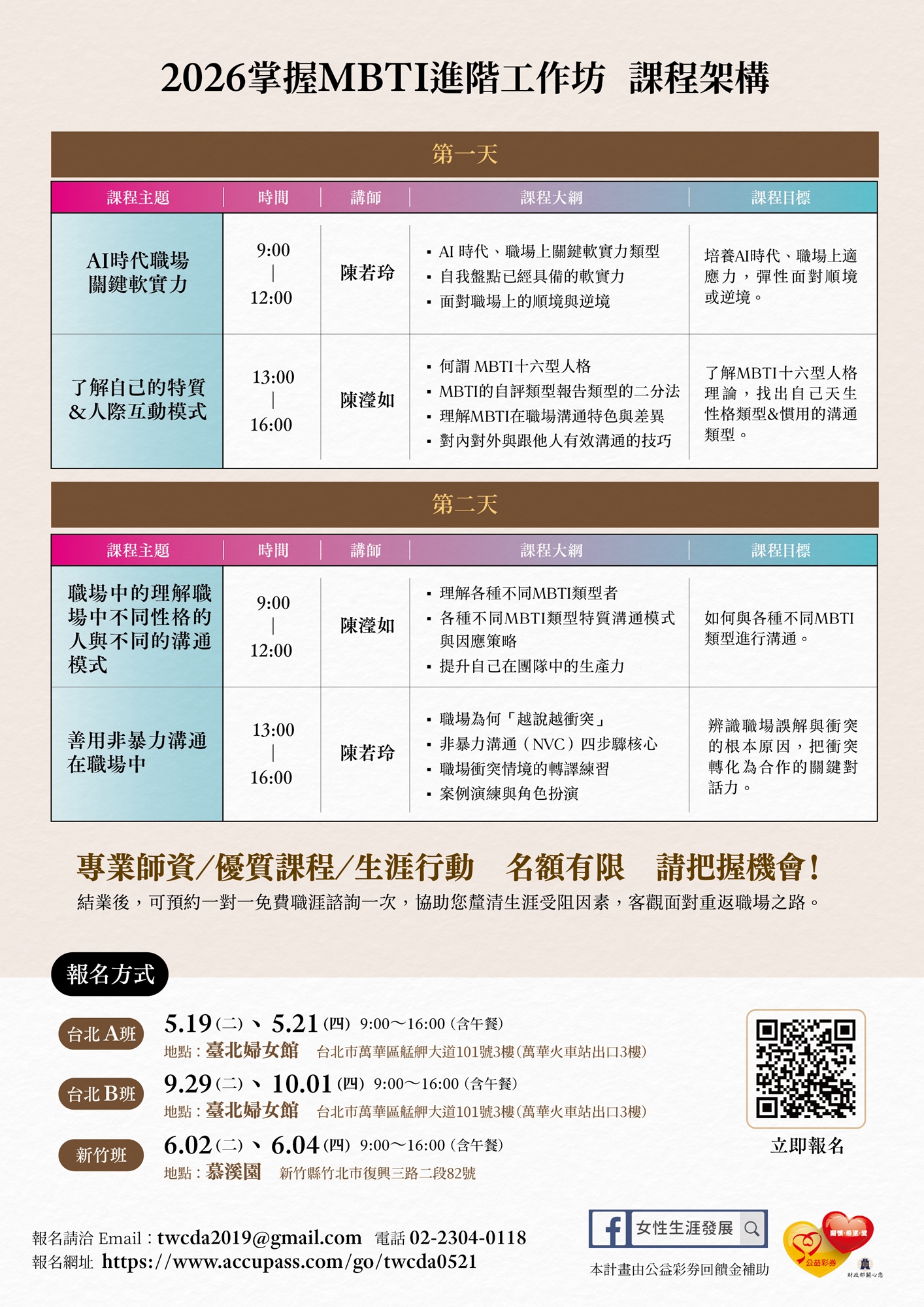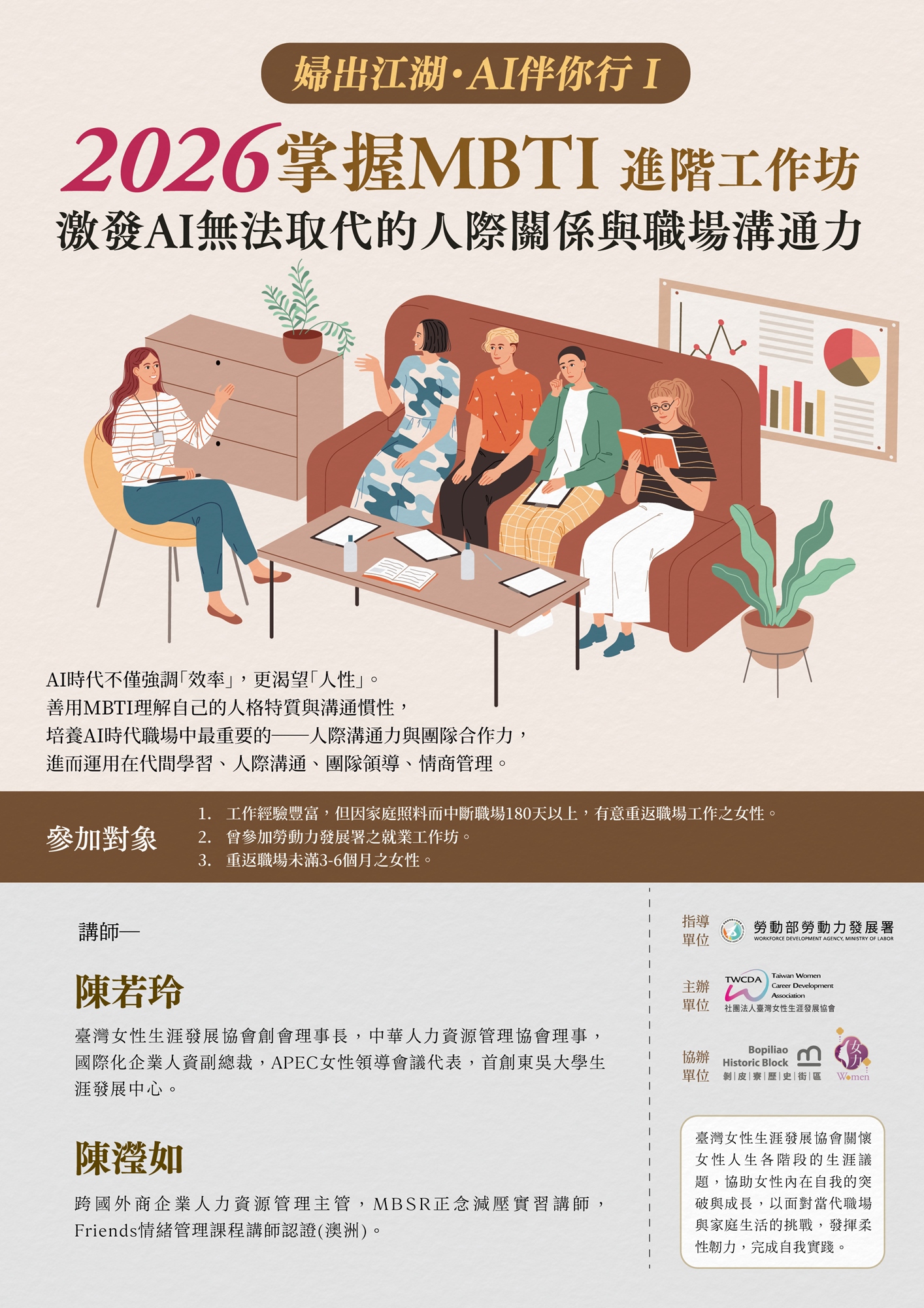 【2026掌握MBTI進階工作坊】激發AI無法取代的人際關係與職場溝通力