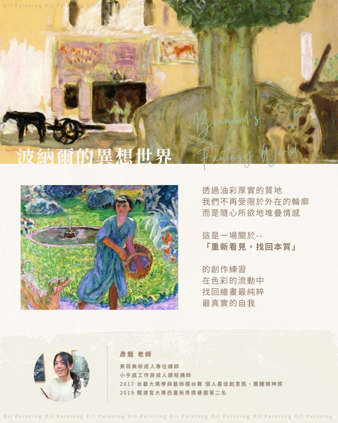 ※本課堂為單次上課,因油畫未乾難以當日攜回作品,需於7日後預約取畫