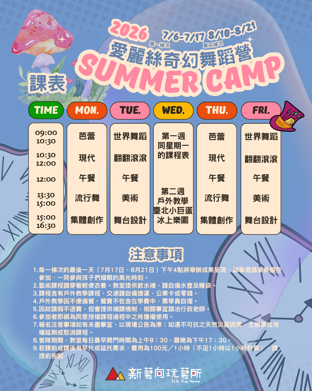 在這個奇妙的世界裡,身體可以變大變小,舞步可以忽快忽慢,一切都充滿驚喜與想像。這次營隊以《愛麗絲夢遊仙境》的奇想世界為靈感,透過舞蹈、遊戲與角色想像,帶領孩子走進一個充滿變化與創意的夢境國度,在探索與嘗試中發現身體表達的各種可能。🎉
